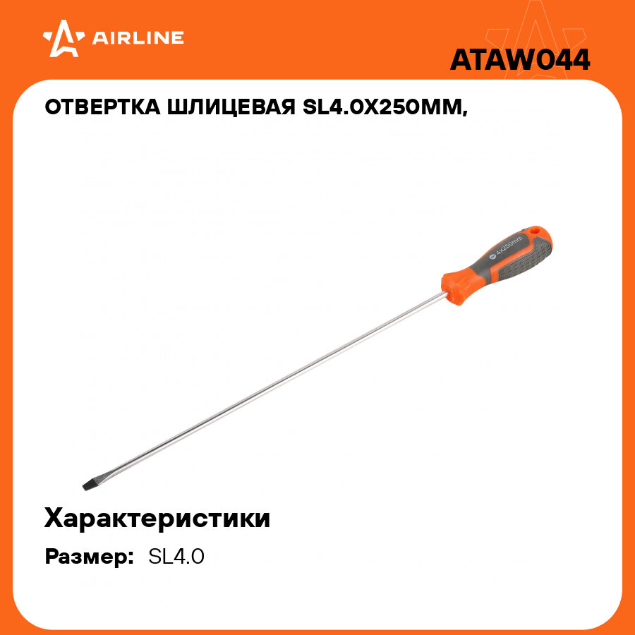 Купить Отвертка шлицевая SL4.0x250мм, магнитный наконечник, пласт. подвес ATAW044 AIRLINE
