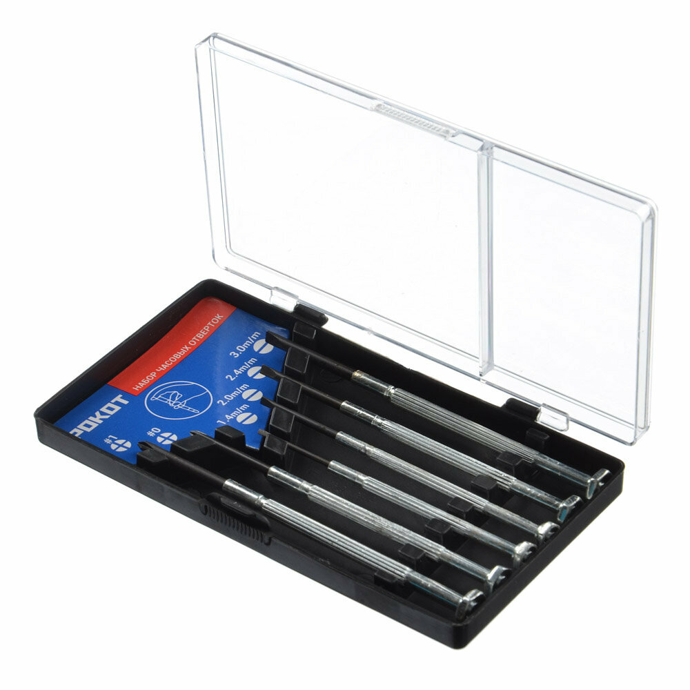 Купить Набор отверток рокот, 6 шт, в футляре, крестообразные и прямые наконечники