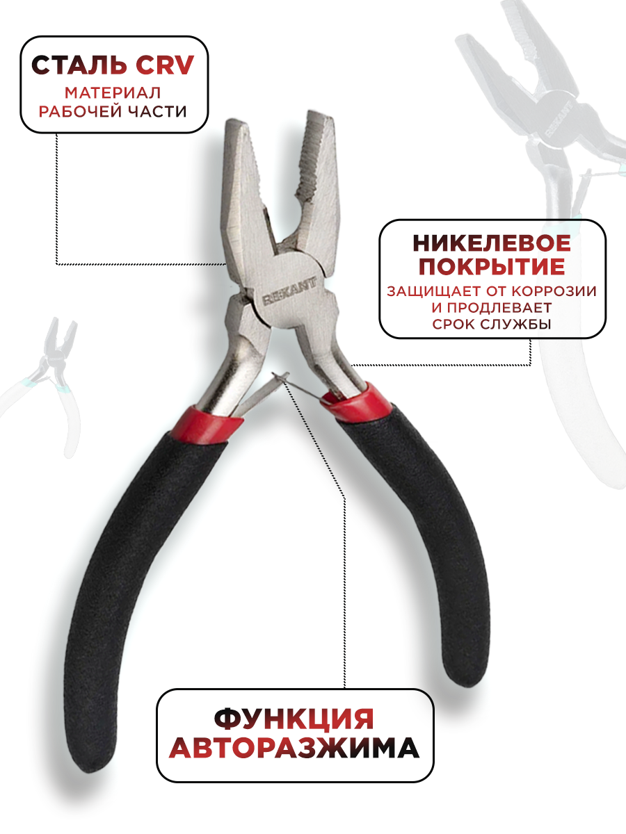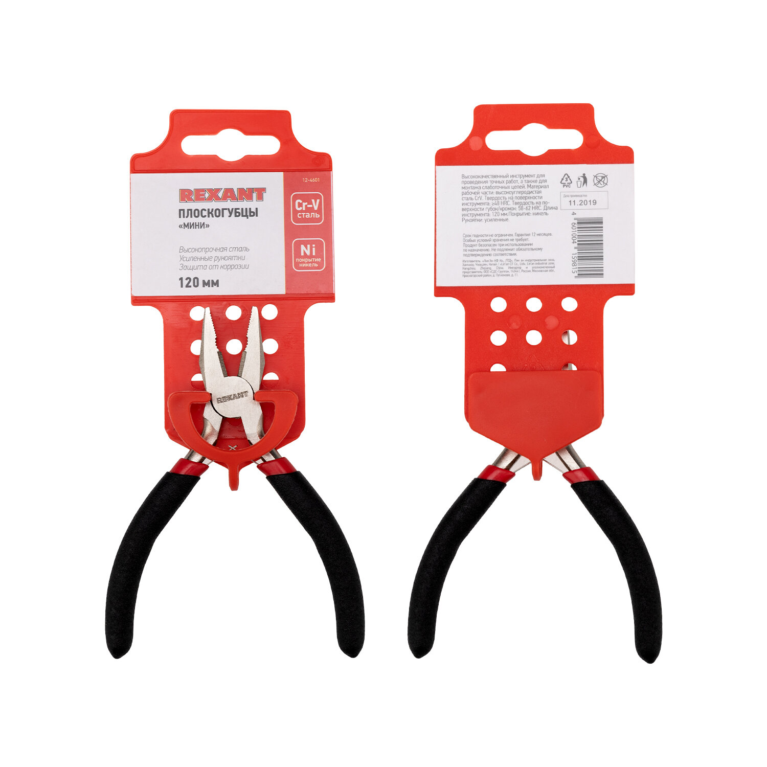 Никелированные мини-плоскогубцы с облегченными обливными рукоятками и авторазжимом губок 120 мм REXANT интересное: