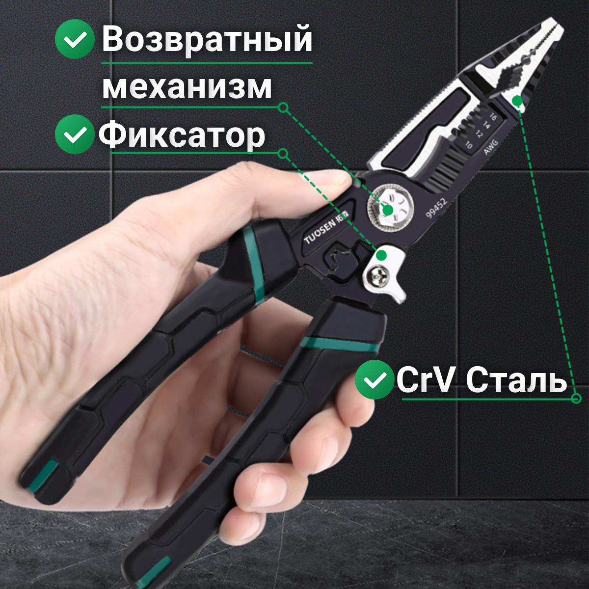 Многофункциональные Пассатижи электрика 10 в 1: комбинированные пассатижи электрика с кримпером, стриппером и бокорезами