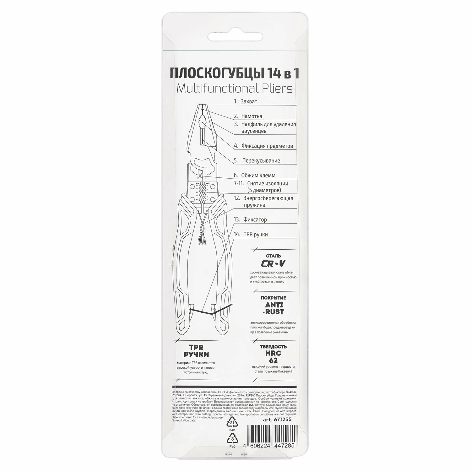 Купить Плоскогубцы универсальные, пассатижи многофункциональные 14 в 1, 217 мм, CrV, хромванадиевая сталь, Грандмастер PL-217, 671255