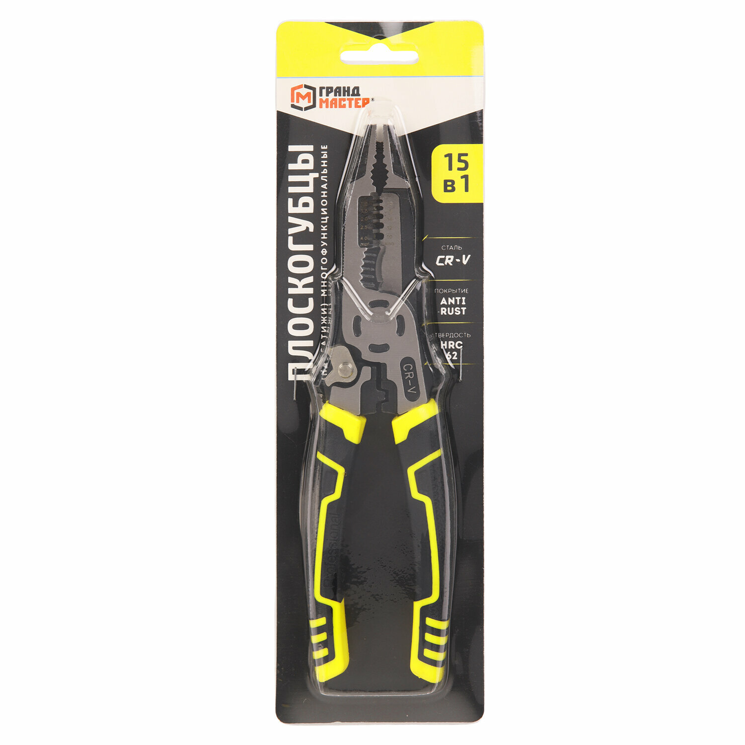 Купить Плоскогубцы универсальные, пассатижи многофункциональные 15 в 1, 225 мм, CrV, хромванадиевая сталь, Грандмастер PL-225, 671258