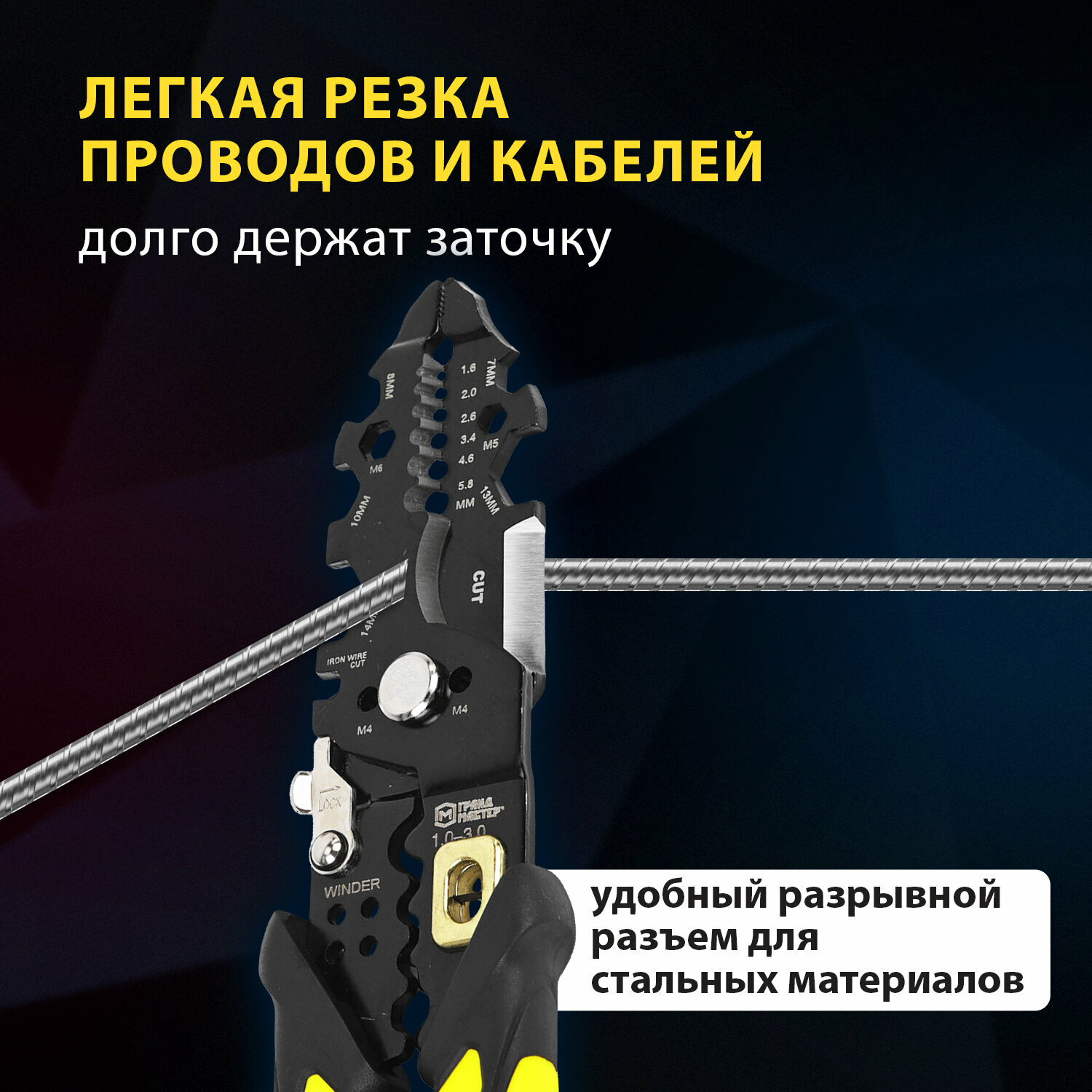 Плоскогубцы универсальные, пассатижи многофункциональные 17 в 1, 210 мм, нержавеющая сталь, AISI420, Грандмастер PL-210, 671263