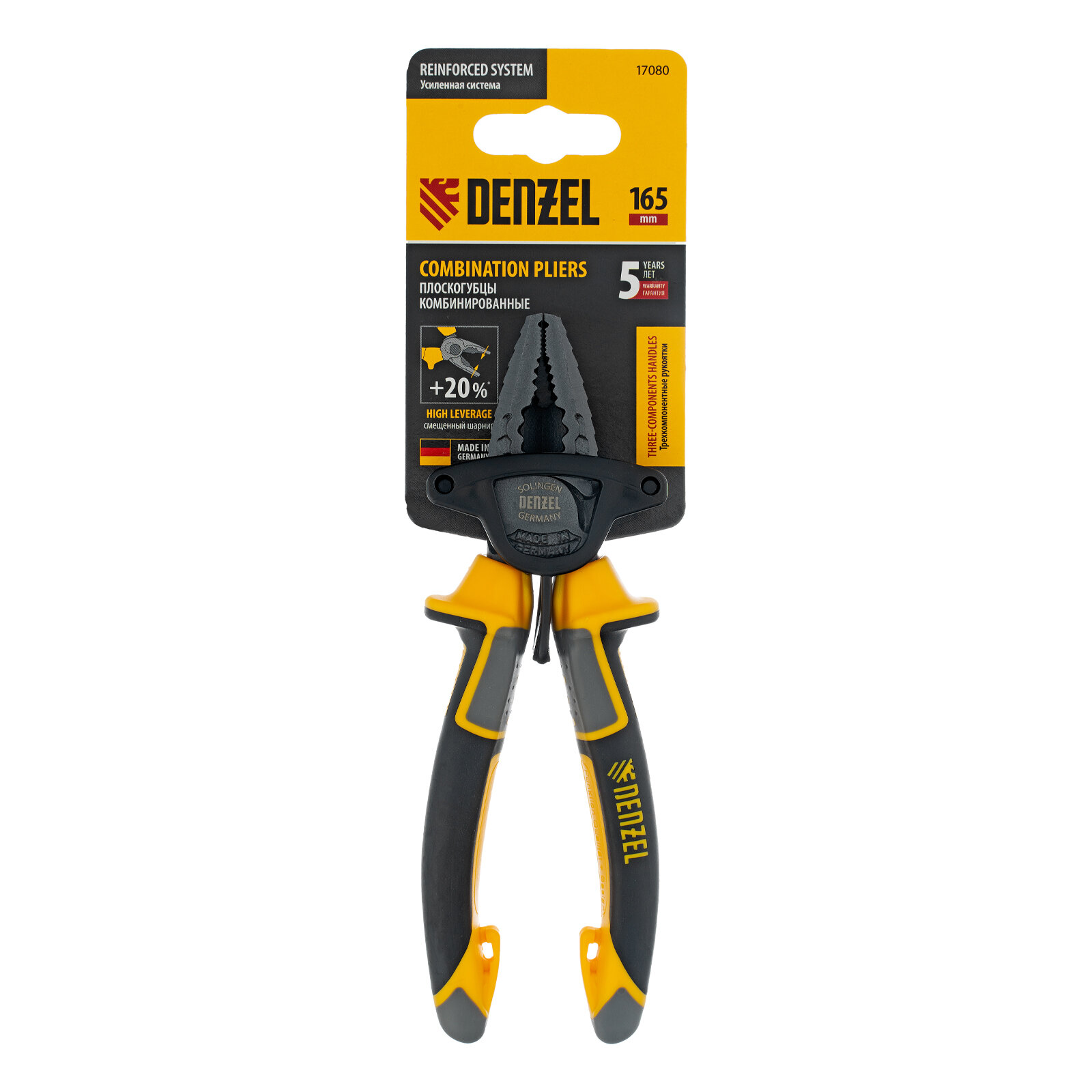Купить Плоскогубцы комбинированные Denzel 165 мм, трехкомпонентные рукоятки 17080