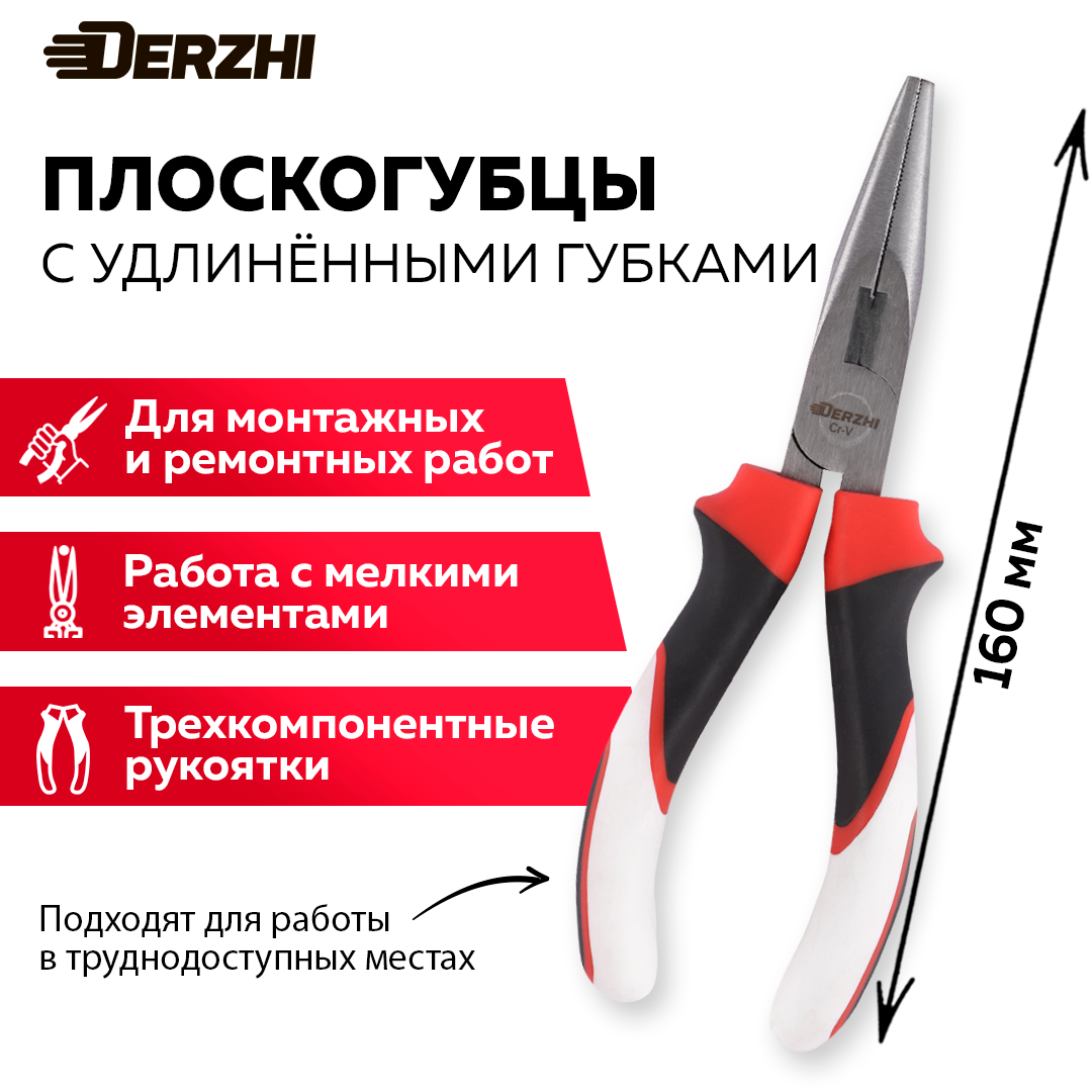 Плоскогубцы "DERZHI", удлиненные губки, легированная сталь, 160мм интересное: