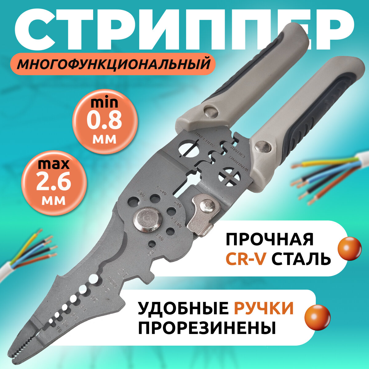 Стриппер Многофункциональный 10 в 1 электрика, клещи для снятия изоляции и зачистки проводов