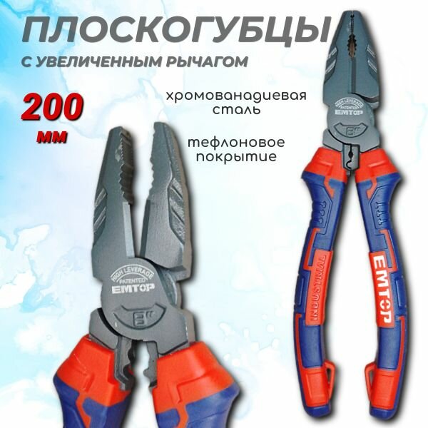 Купить Плоскогубцы EMTOP с увеличенным рычагом 200 мм высокопрочные