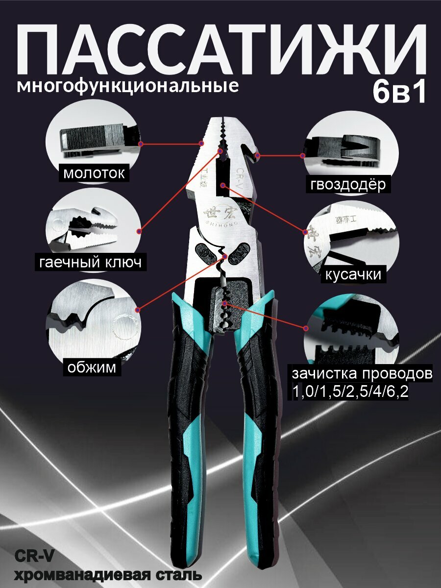 Пассатижи многофункциональные 6в1 , режущие кромки, хром-ванадиевые губки интересное: