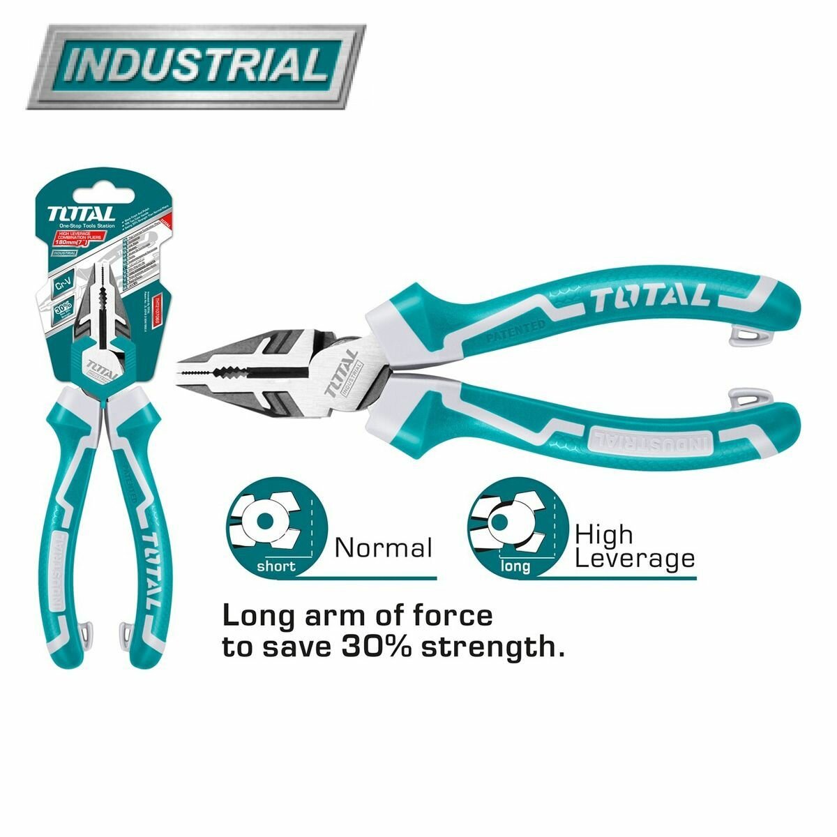 Плоскогубцы комбинированные TOTAL с увеличенным рычагом, длина 200 мм, сталь Cr-V