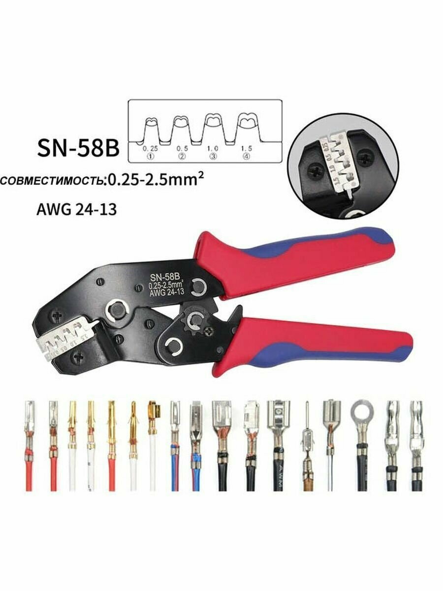 Кримпер с храповым механизмом для электрических клемм, обжимник SN58B 0.25-2.5мм awg24-13 интересное: