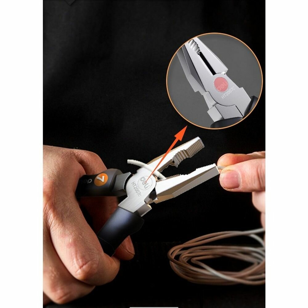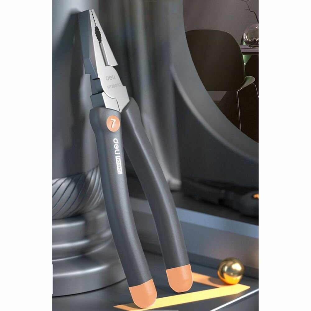 Комбинированные плоскогубцы "Home Series Gray" Deli HT2007C 180мм (эксклюзивный дизайн, рукоятка софттач пластик, подарочная упаковка) интересное: