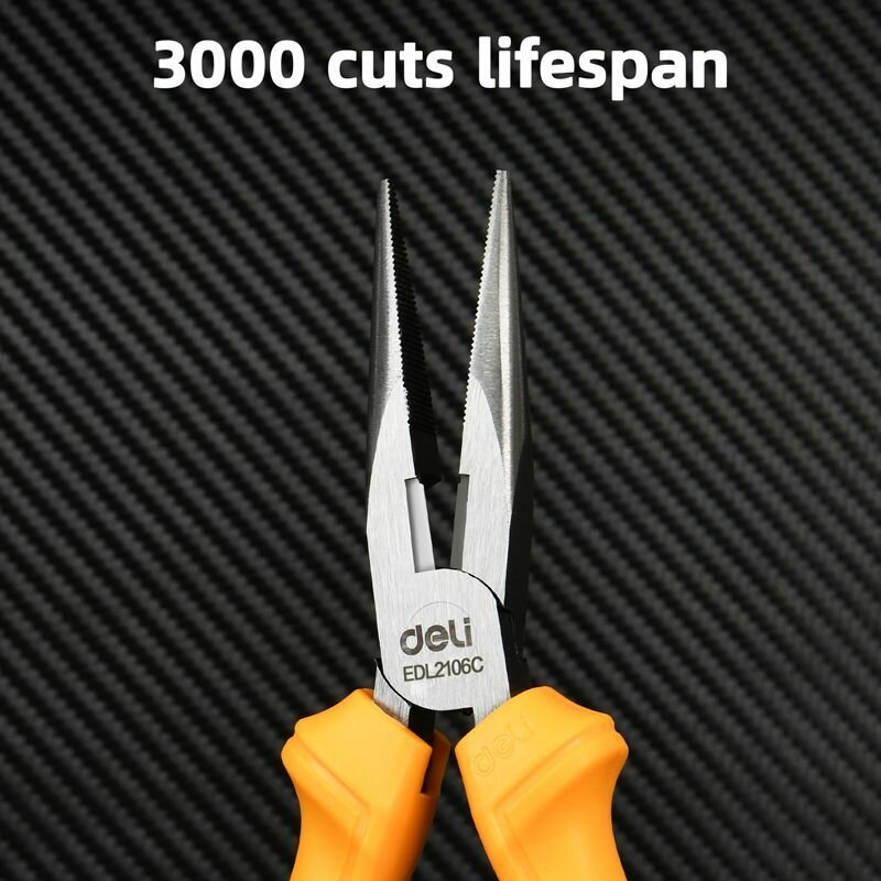 Купить Удлиненные плоскогубцы 160мм Deli DL2106C (сталь 55С, пластиковая рукоять)