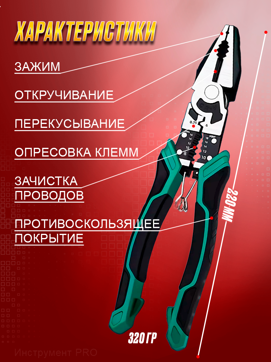 Купить Пассатижи многофункциональные, плоскогубцы для снятия изоляции, набор электрика 9 в 1 и 5 в 1