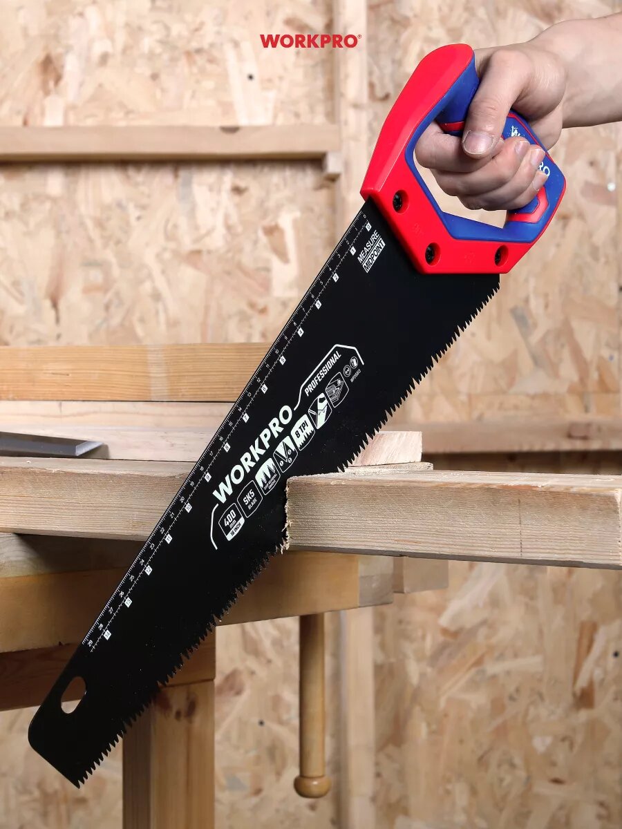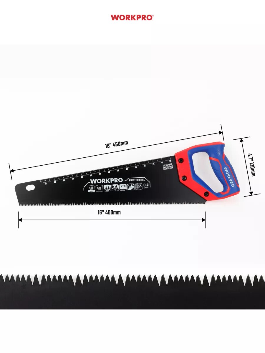 Ножовка ручная по дереву 500 мм WP215007, WORKPRO, цвет синий/красный