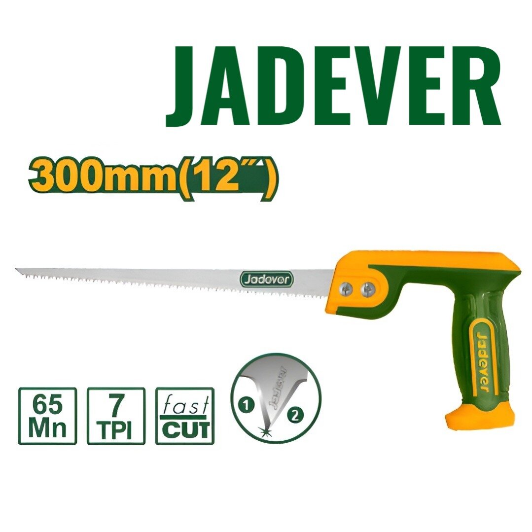 Купить Пила JADEVER выкружная по гипсокартону 300 мм, шаг зуба 7 TPI, биметалл 65 Mn