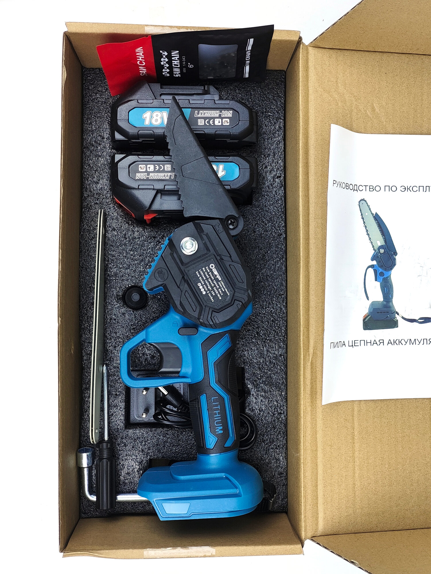 Пила аккумуляторная цепная ручная 6 дюймов с двумя аккумуляторами интересное:
