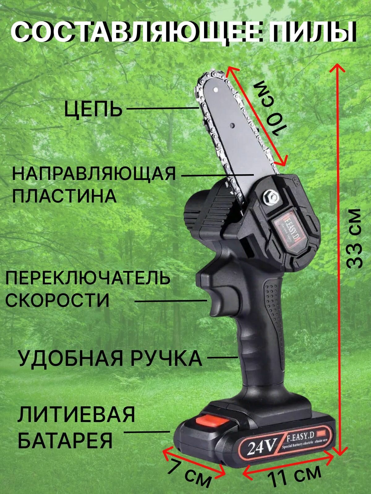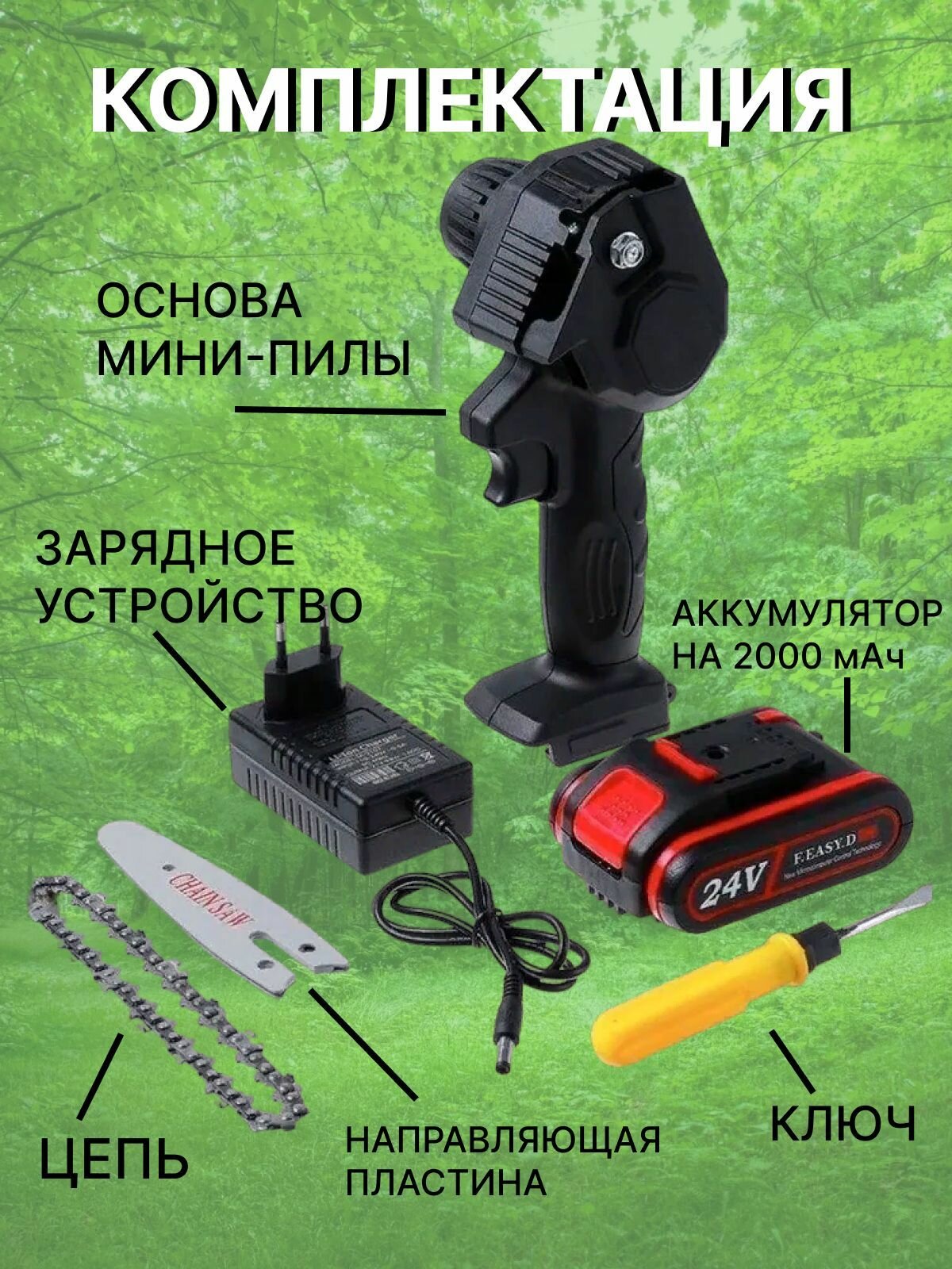 Портативная аккумуляторная цепная мини пила для обрезки деревьев, мастерской Mini Electric Chainsaw в коробке интересное: