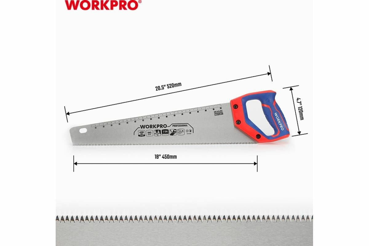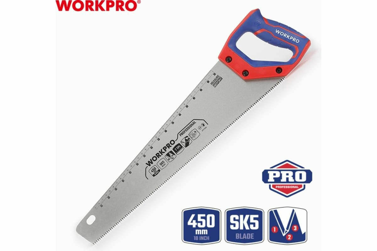 Ножовка по дереву WORKPRO 450 мм, SK5, 7TPI WP215006 интересное: