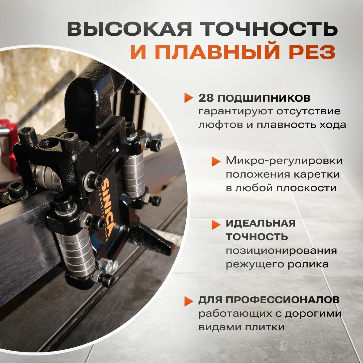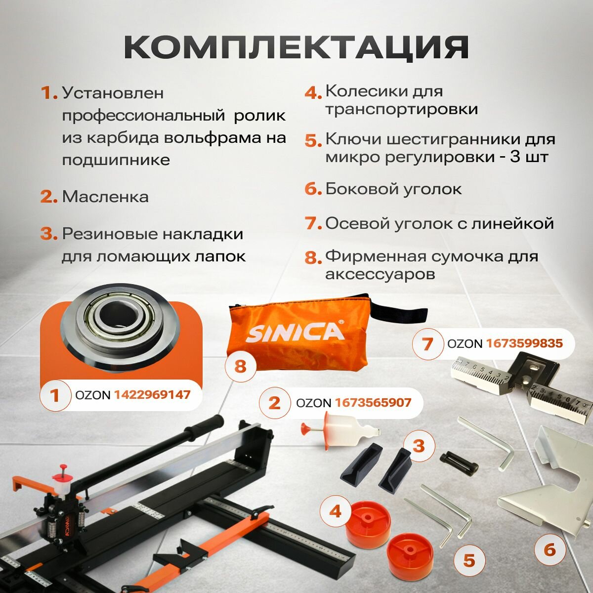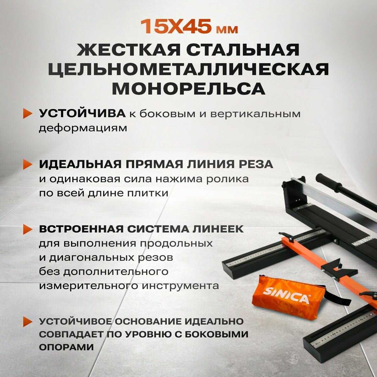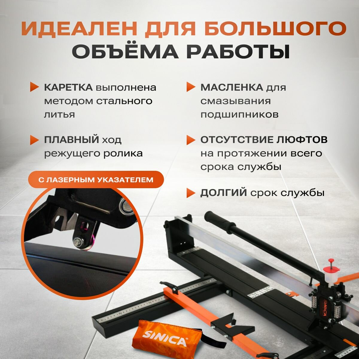 Комплект Ручной плиткорез + сумка SINICA HTC0800, 800 мм; 15 мм; 28 подшипников интересное: