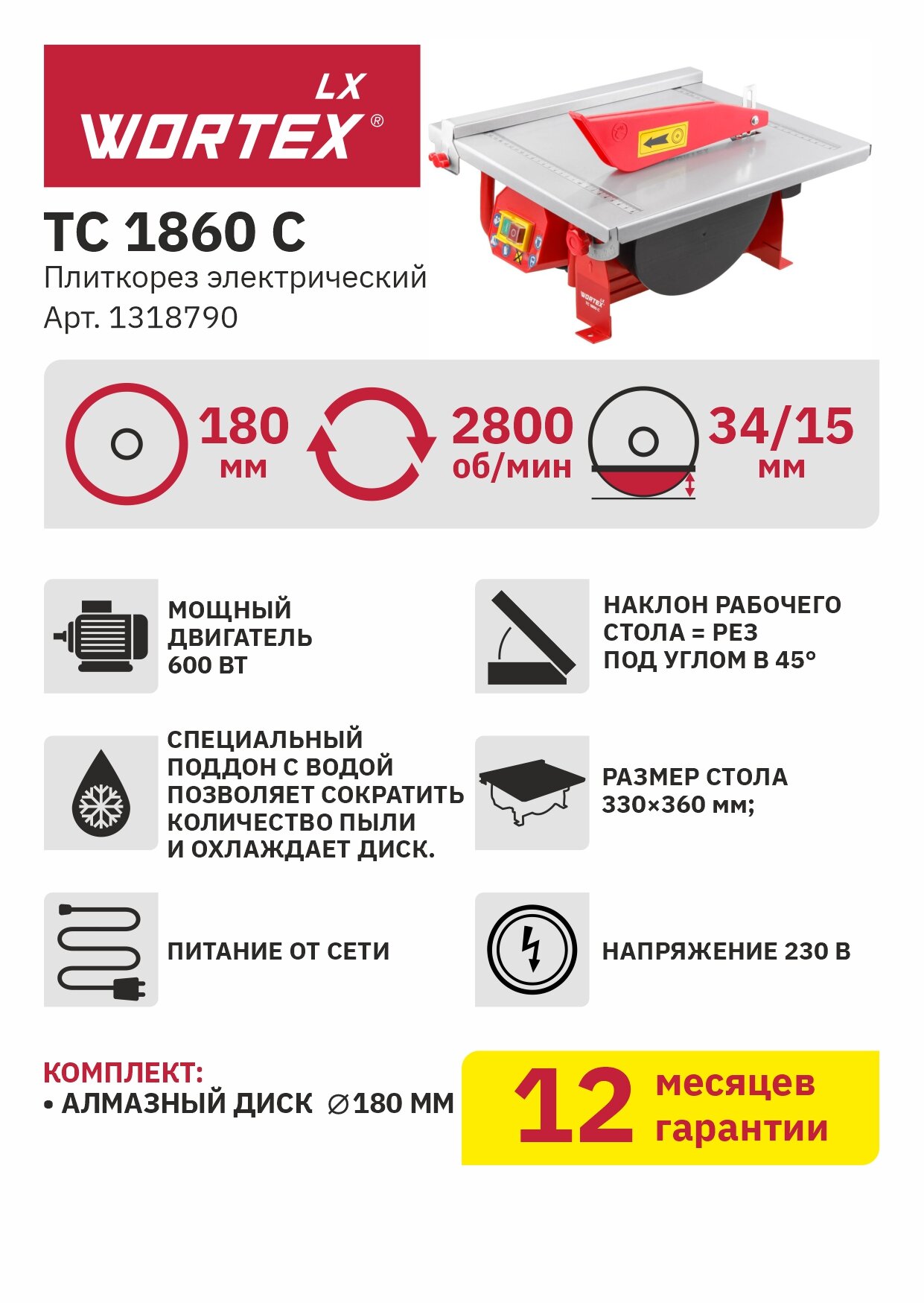 Плиткорез электрический водяной WORTEX LX TC 1860 C 600 Вт до 34 мм (1318790) интересное: