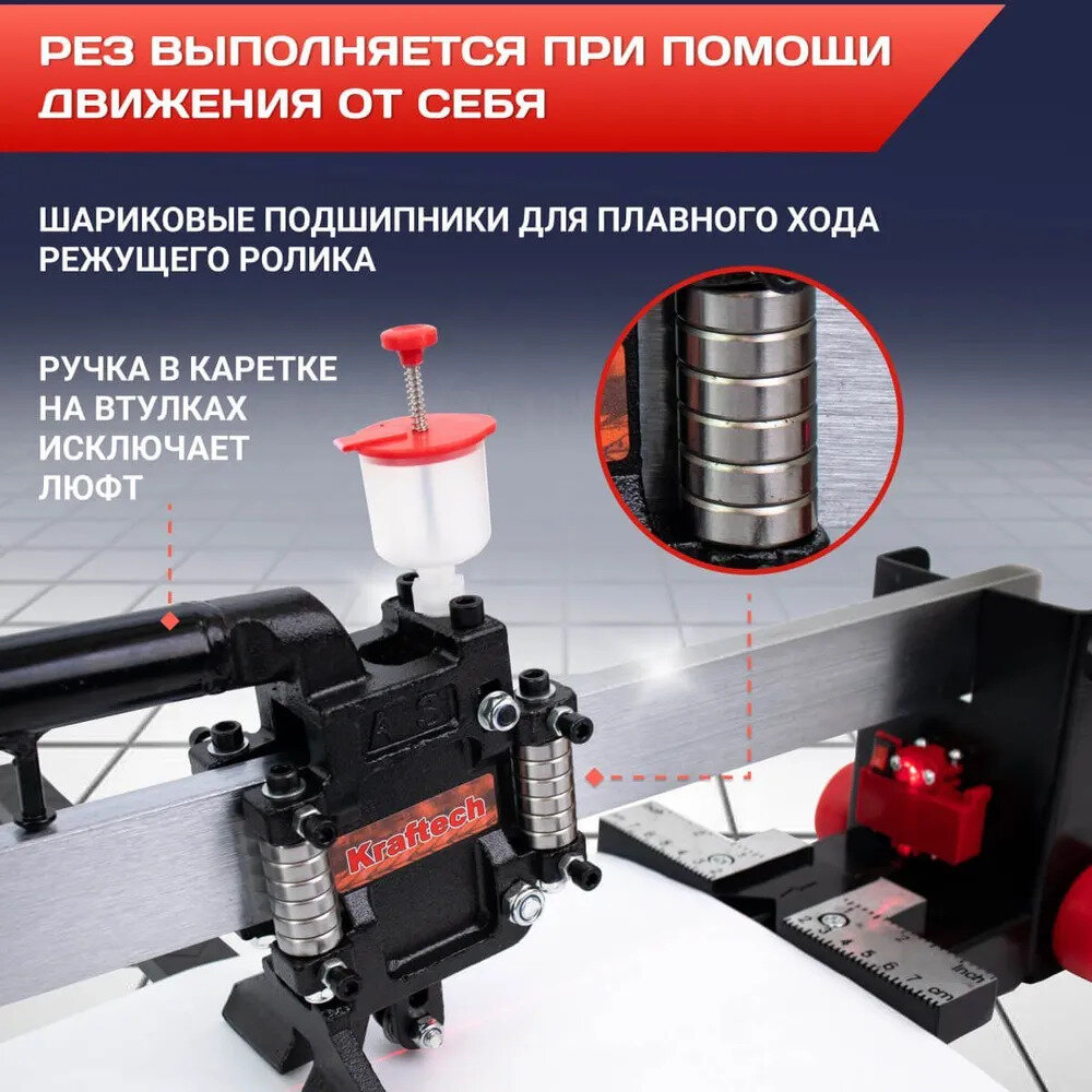 Плиткорез ручной Kraftech TCU-100, длина реза 100см, толщина плитки 16мм, с лазером интересное:
