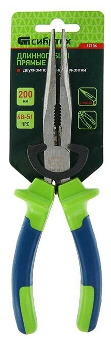 Купить Длинногубцы прямые Сибртех 200 мм, двухкомпонентные рукоятки 17106