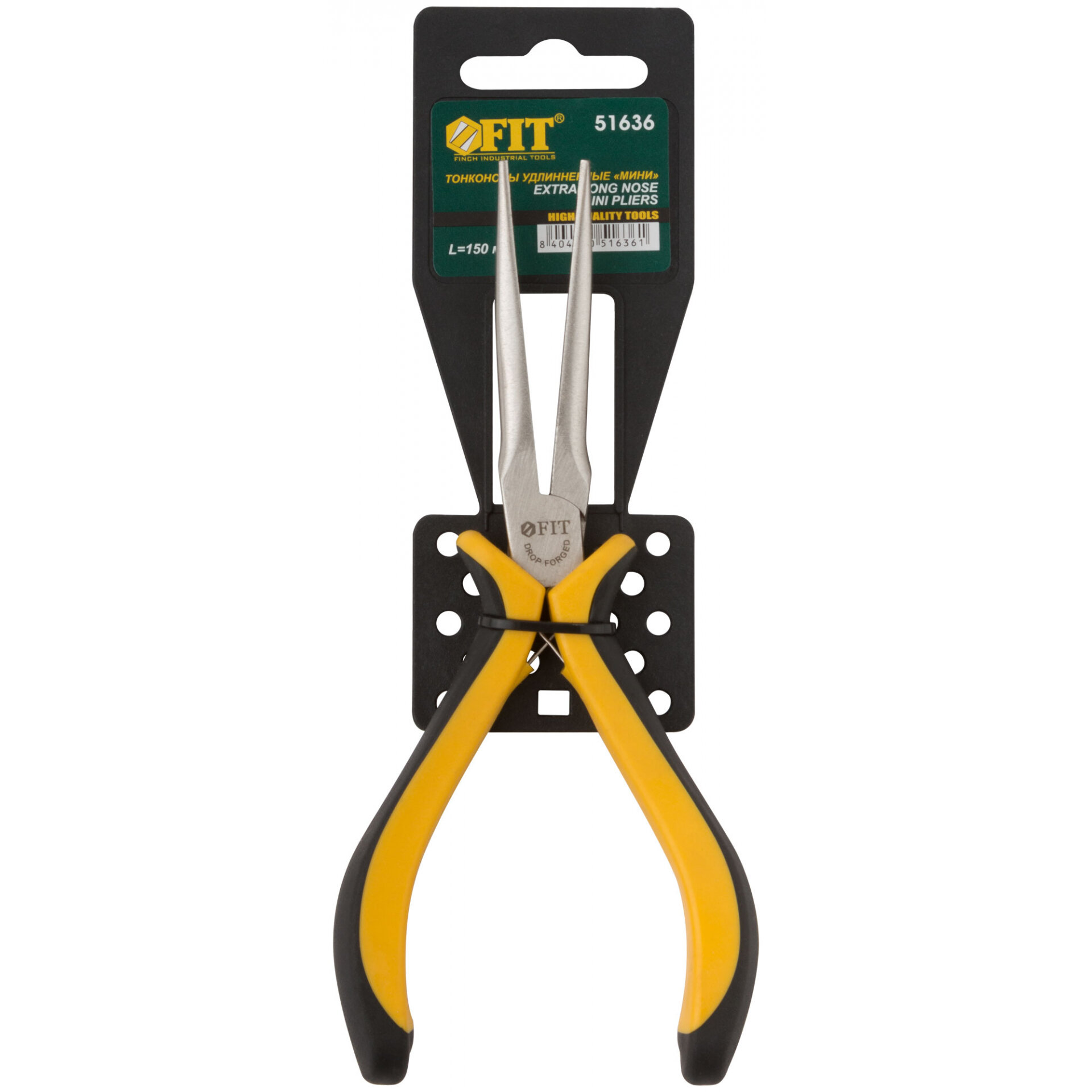 Купить Тонконосы, тонконосы мини FIT 51636 удлиненные Профи, никелированное покрытие, черно-желтые мягкие ручки 150 мм