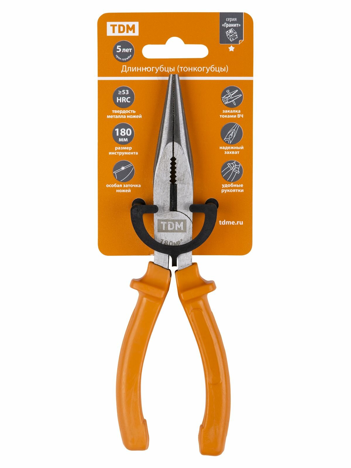 Длинногубцы (тонкогубцы), с пластиковыми рукоятками, углеродистая сталь, 180 мм, серия "Гранит" TDM интересное: