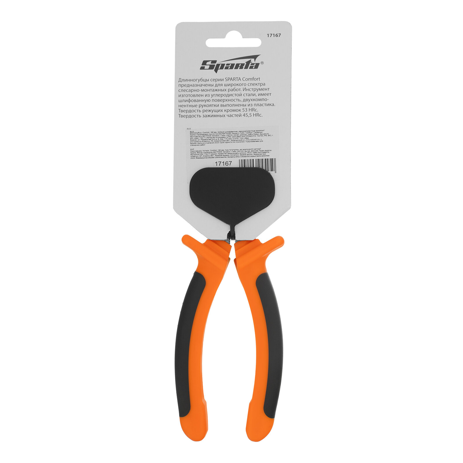 Купить Длинногубцы Sparta Comfort 180 мм, прямые шлифованные, двухкомпонентные рукоятки 17167