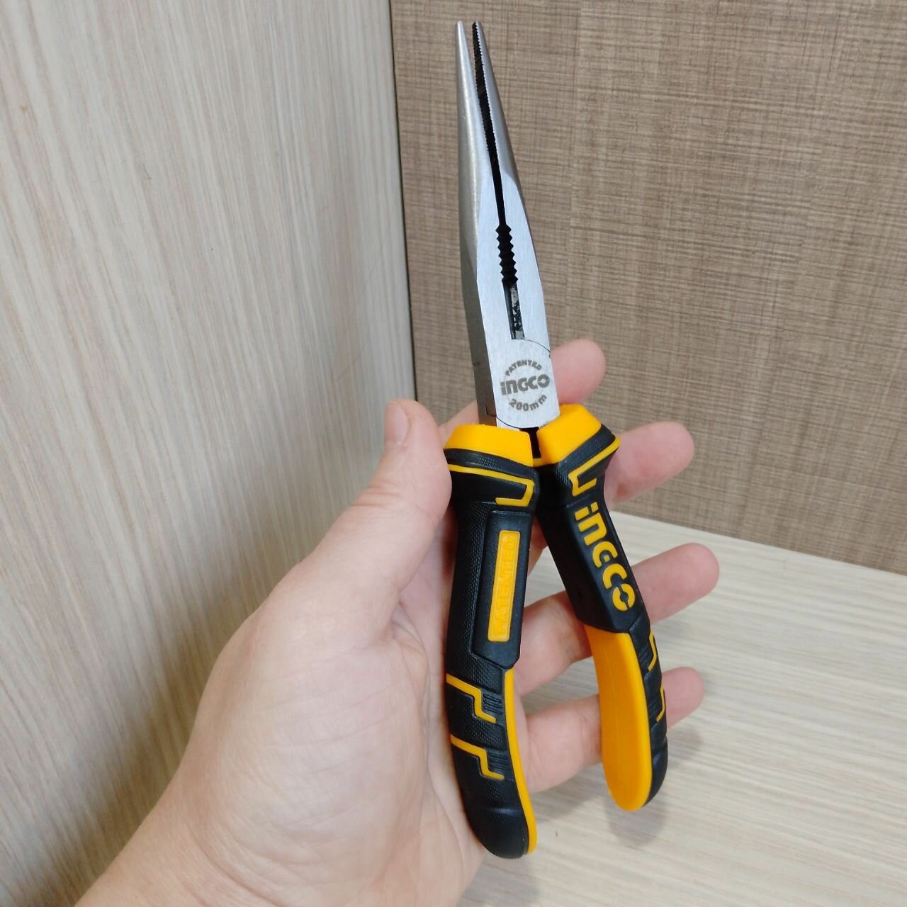 Купить Длинногубцы INGCO, хромванадиевая сталь, длина 20 см, оранжевые/черные