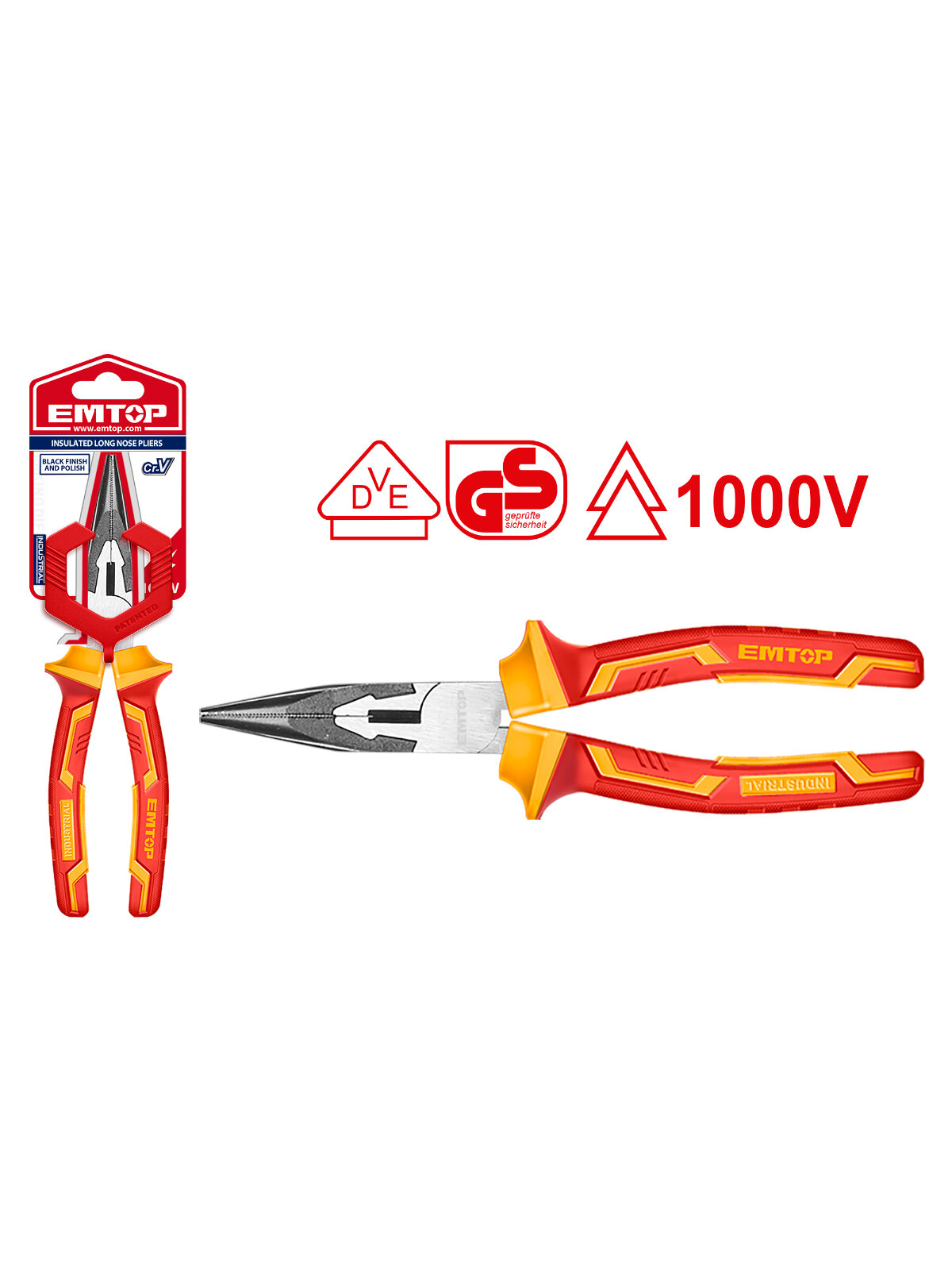 Купить Длинногубцы диэлектрические 160 мм EMTOP для работ под напряжением до 1000 В (утконосы)