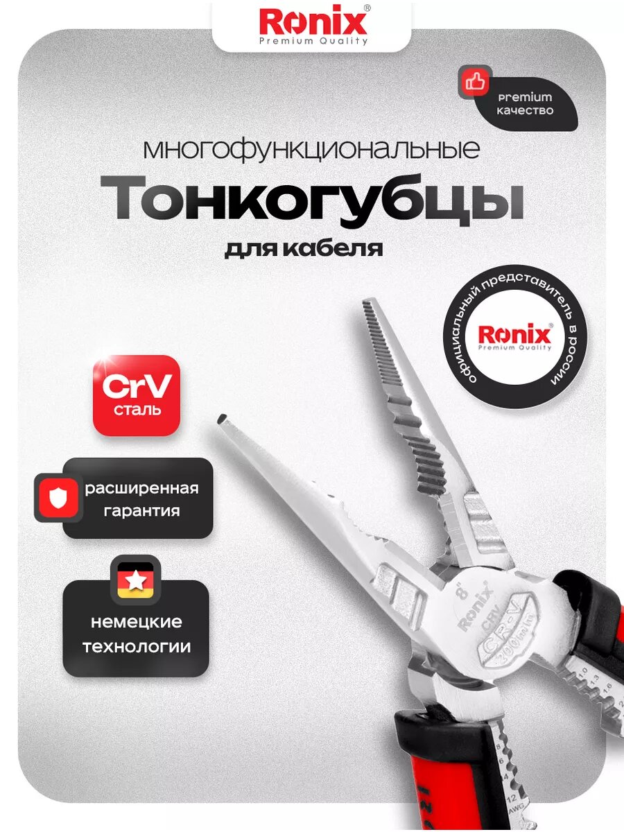 Купить Длинногубцы многофункциональные Ronix для зачистки кабеля Сr-V сталь
