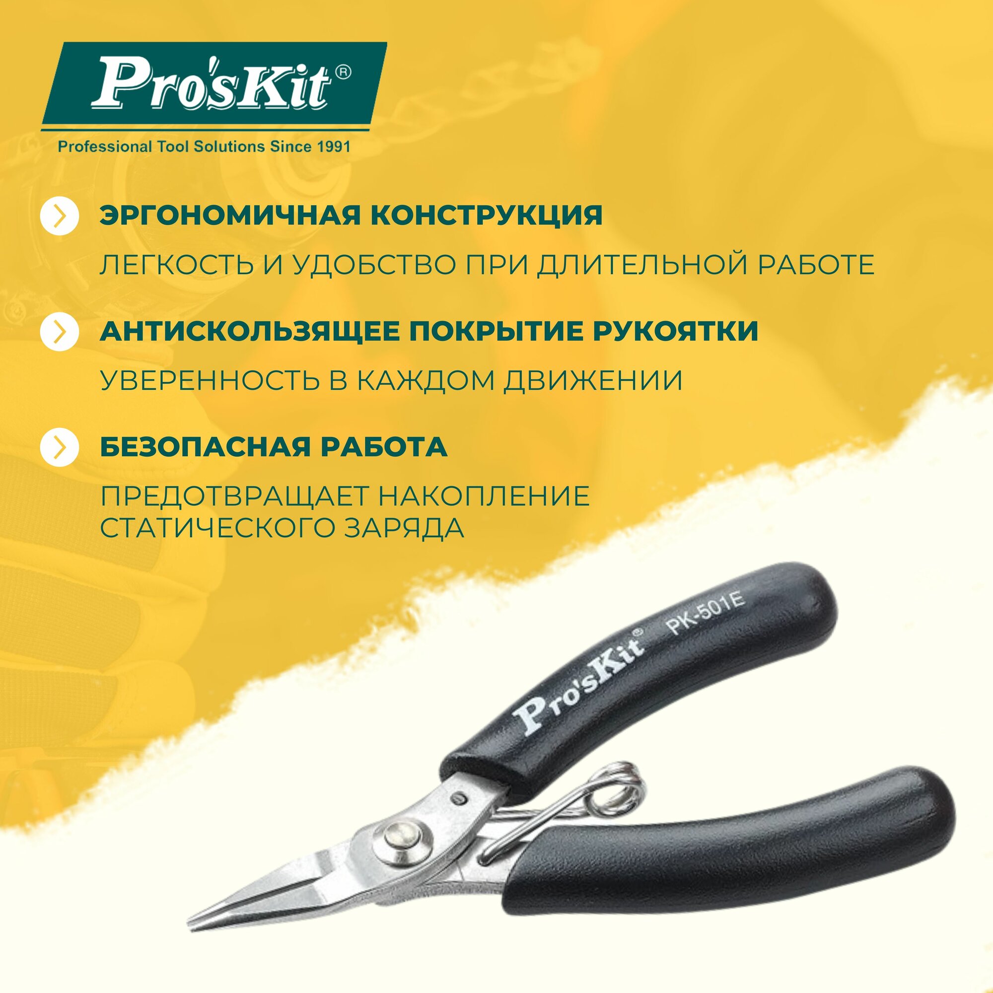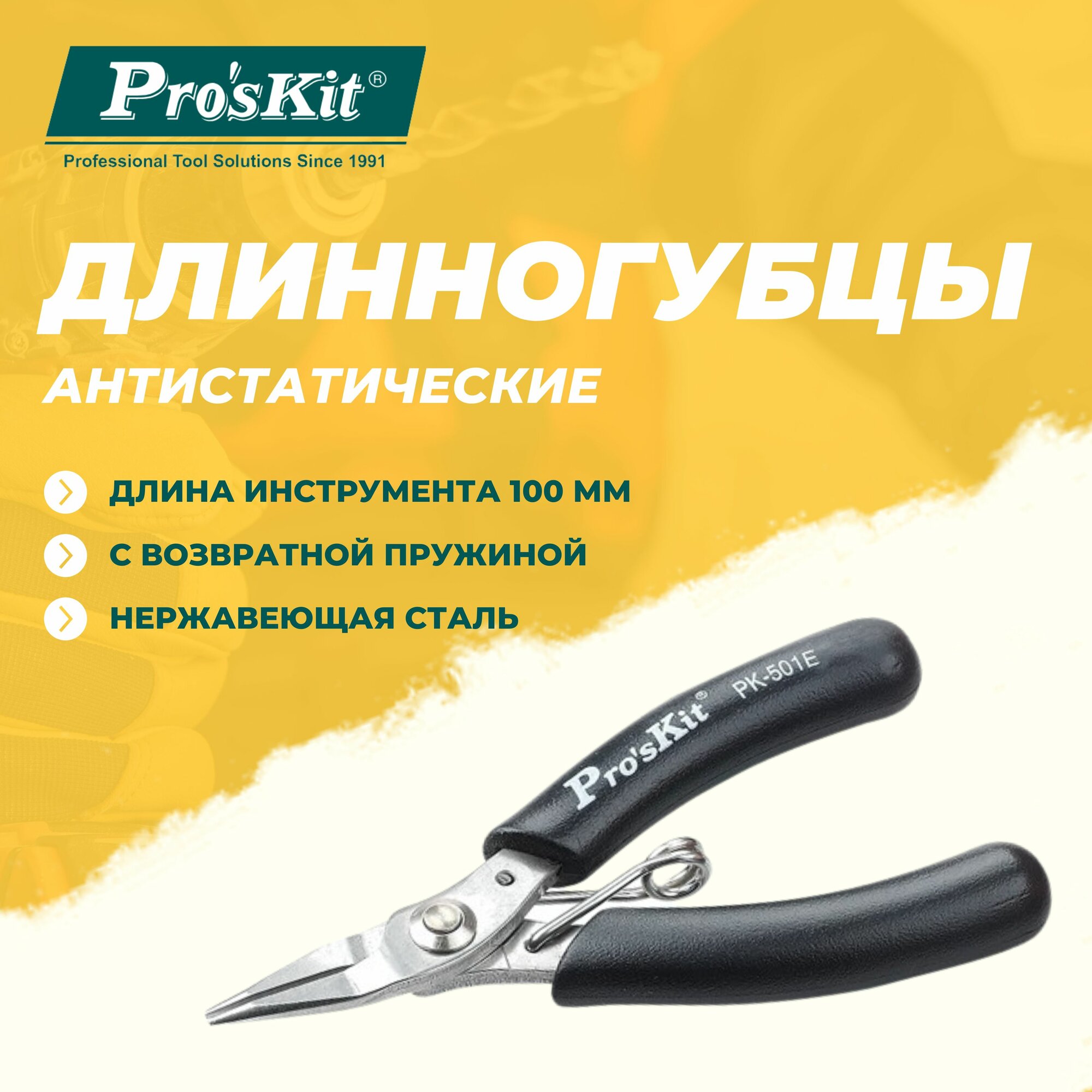 Купить Микро длинногубцы антистатические 1PK-501E PROSKIT с возвратной пружиной, 100 мм