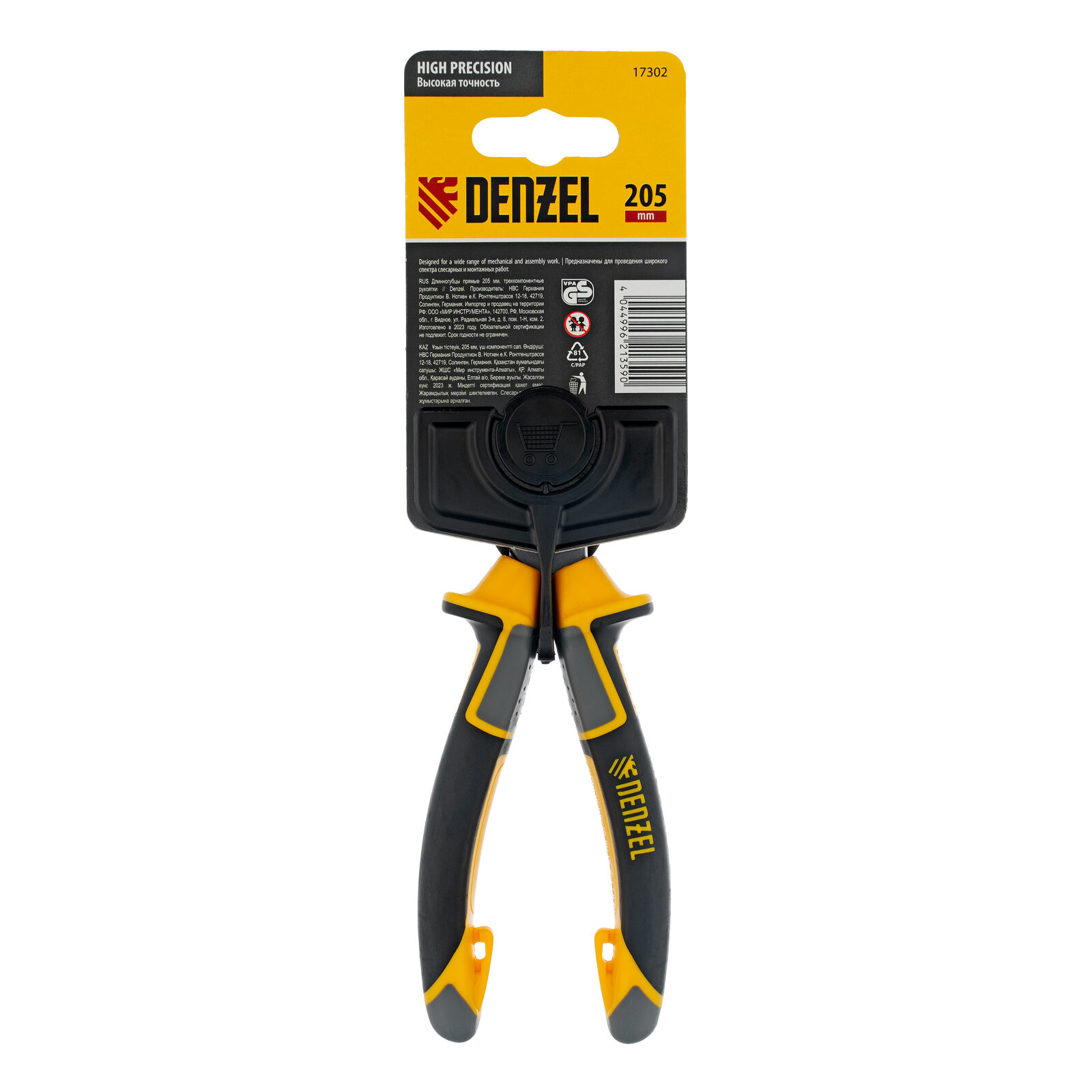 Купить Длинногубцы прямые Denzel 205 мм, трехкомпонентные рукоятки 17302