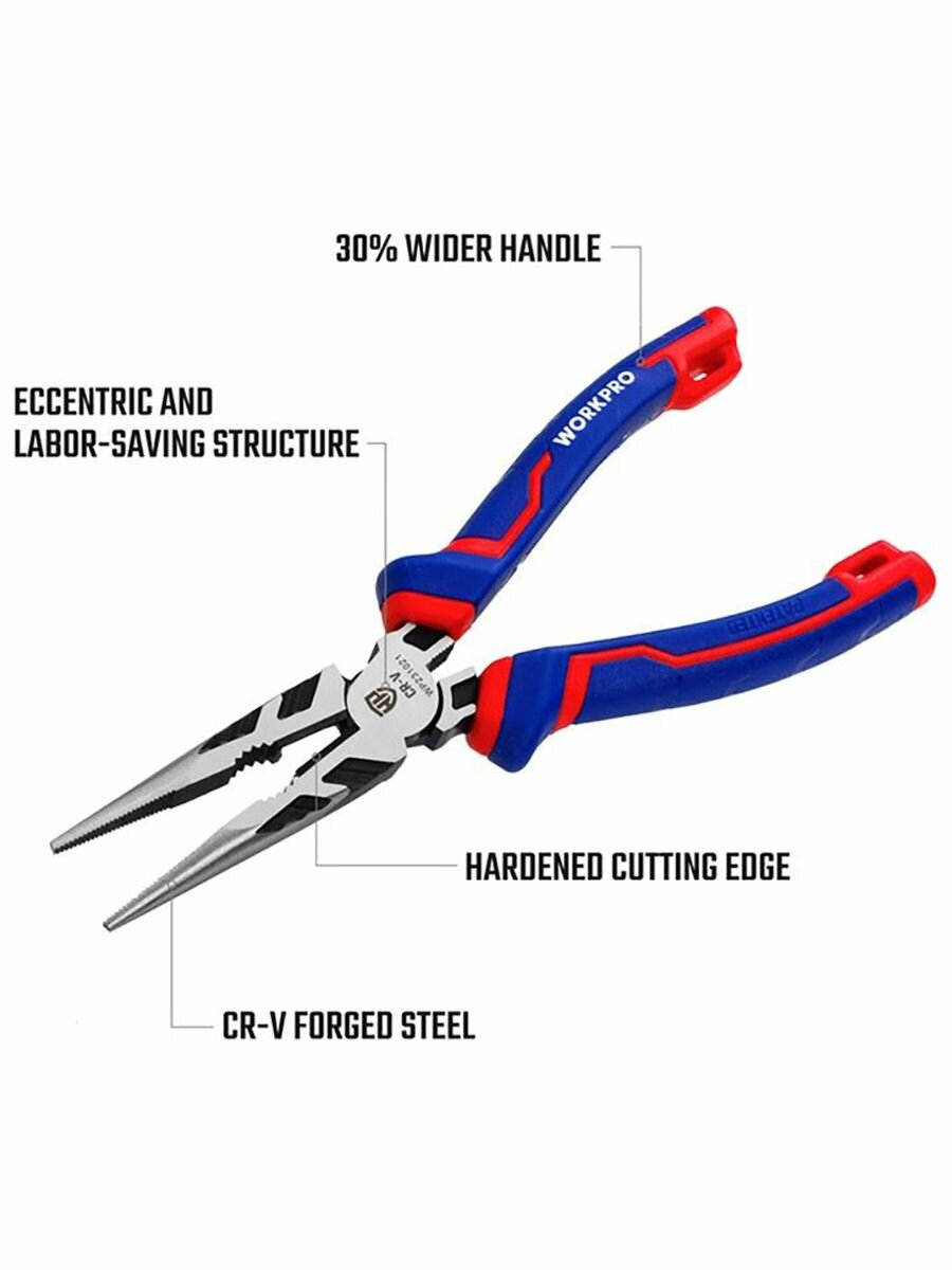 Длинногубцы 160 мм с функцией протяжки кабеля CR-V WP231020, WORKPRO, цвет синий/красный интересное: