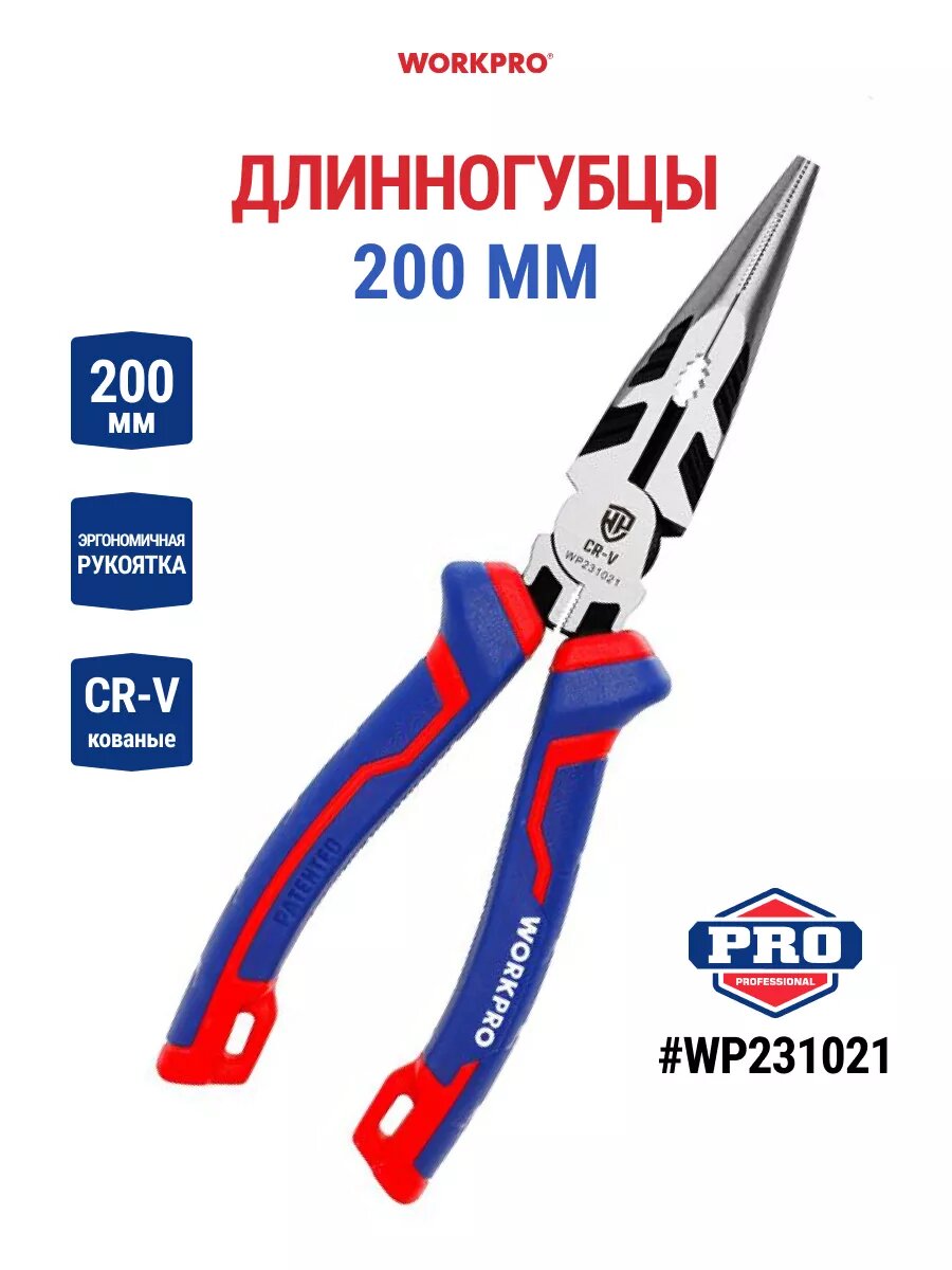 Длинногубцы усиленные 200 мм CR-V WP231021, WORKPRO #WP231021 интересное: