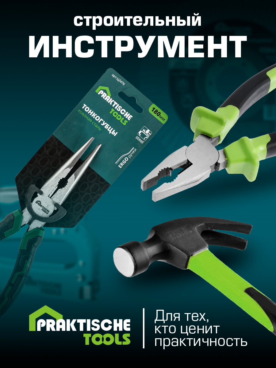 Тонкогубцы `PRAKTISCHE TOOLS`, кованая сталь, двухкомпонентные рукоятки, 180 мм интересное: