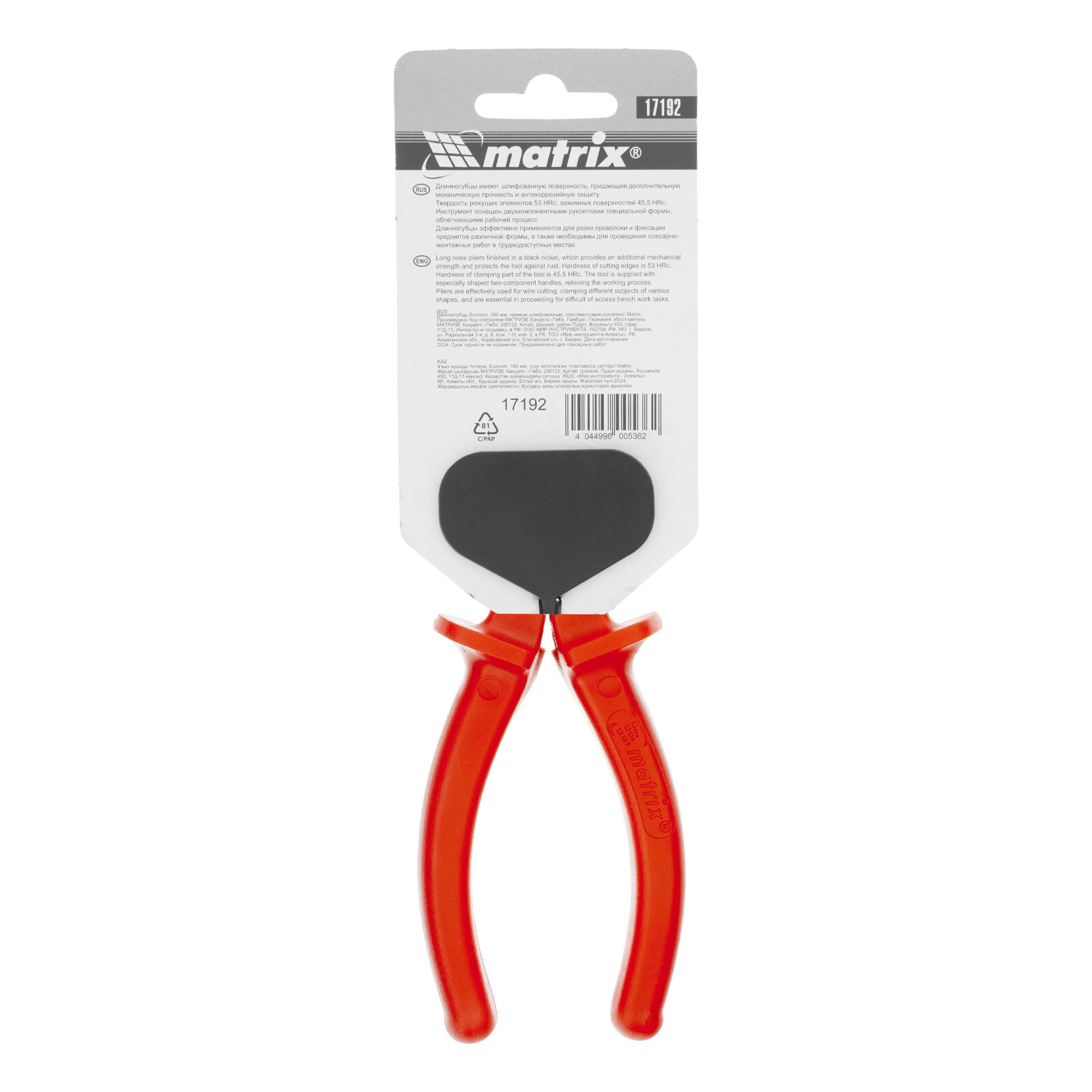 Купить Длинногубцы Matrix Econom 160 мм, прямые шлифованные, пластмассовые рукоятки 17192