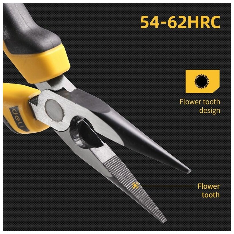 Удлиненные плоскогубцы Deli DL2106 160мм Размер: 6 дюймов. (углеродистая сталь 55, двухкомпонентная рукоять) интересное: