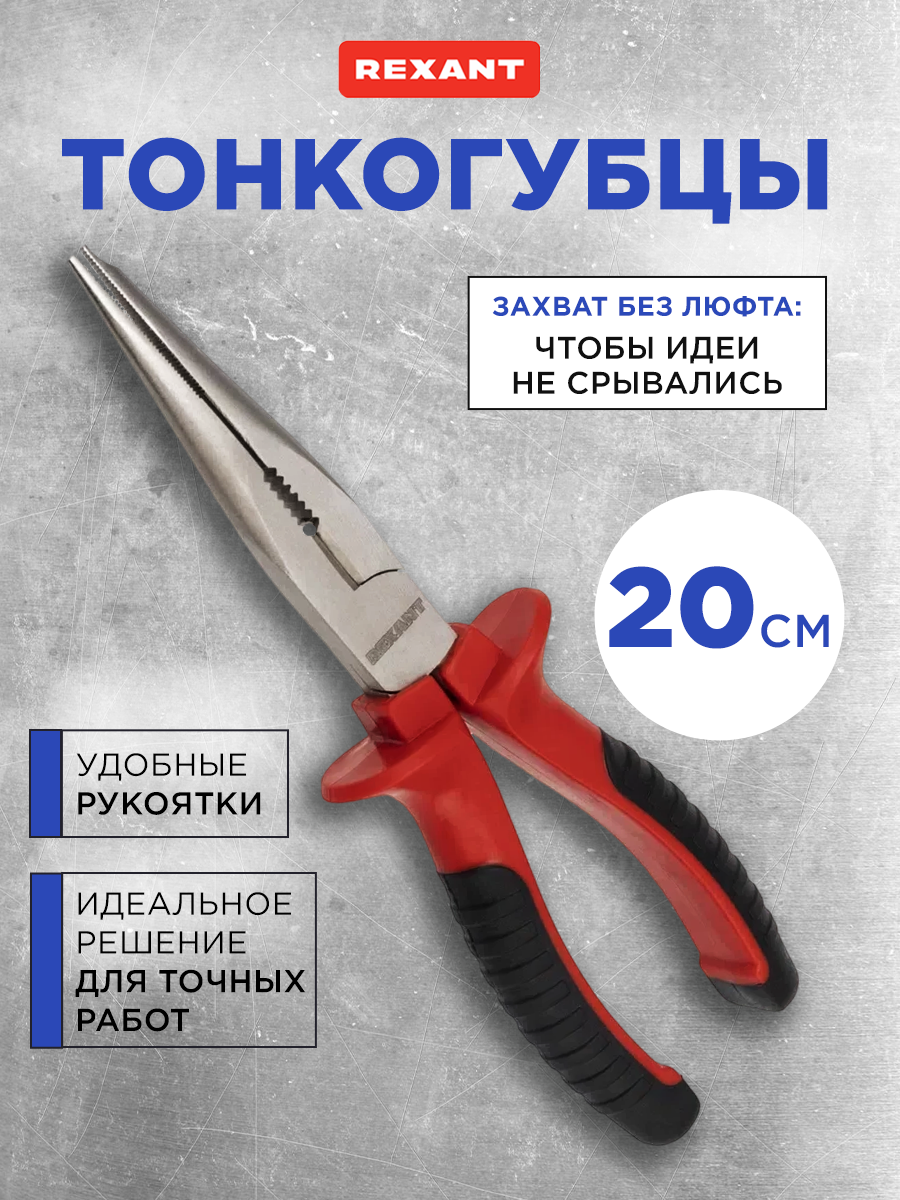 Никелированные тонкогубцы для особо мелких работ с двухкомпонентными рукоятками 200 мм REXANT интересное: