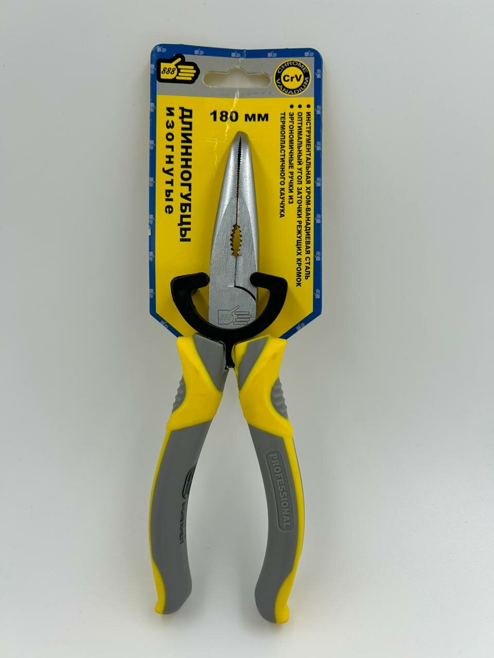 Купить Длинногубцы изогнутые (49/8) 180мм CrV сталь, сатинир. пов-сть, двухкомп. руч (888) 6214180