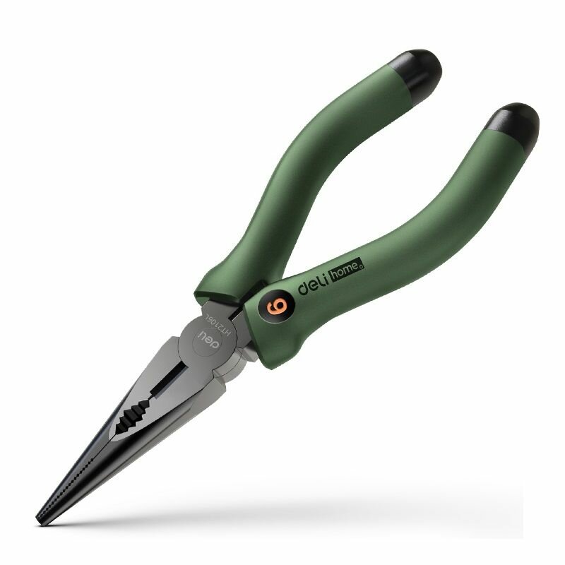 Удлиненные плоскогубцы "Home Series Green" Deli HT2106L 160мм (эксклюзивный дизайн, рукоятка софттач пластик, подарочная упаковка) интересное: