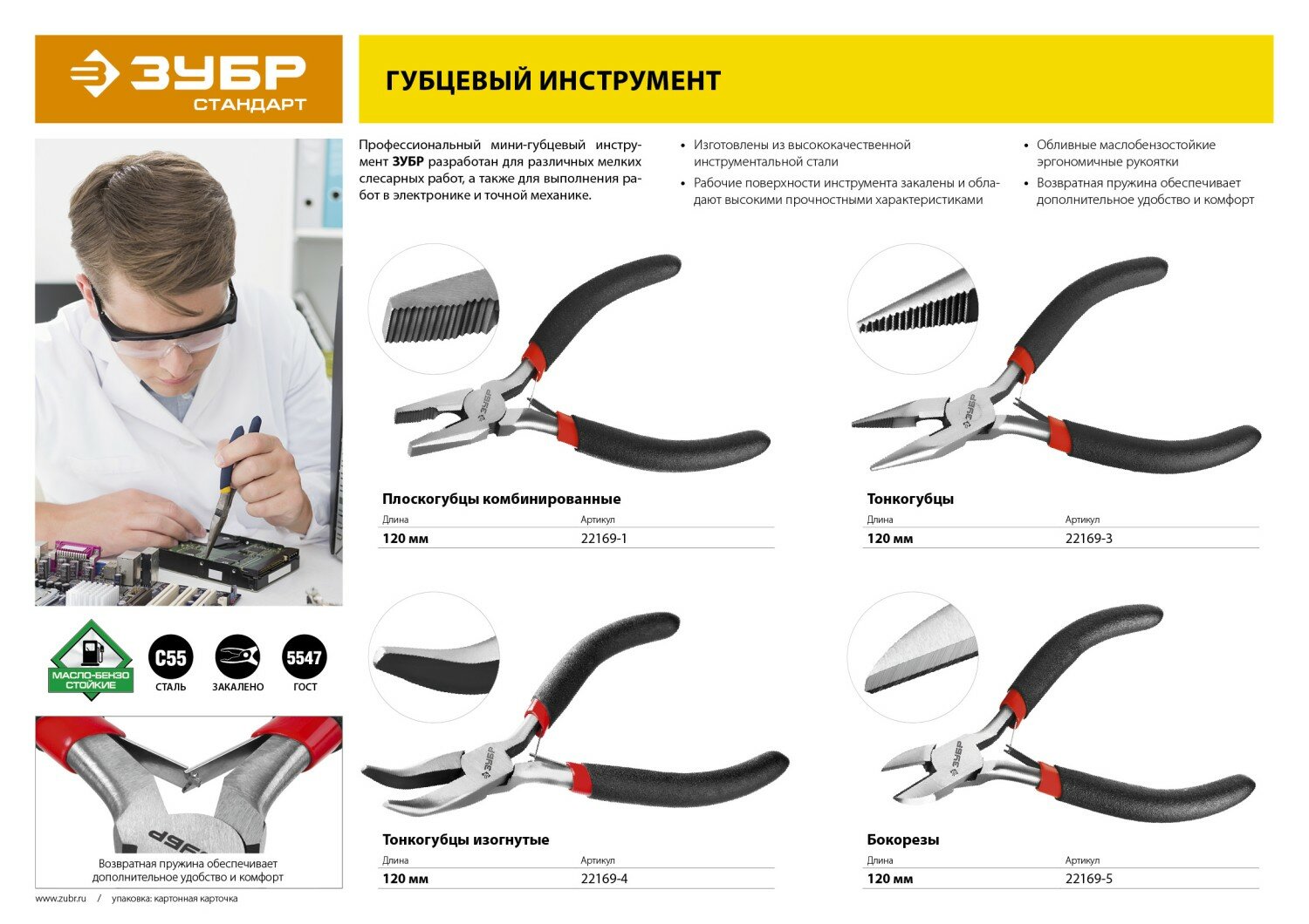 Мини тонкогубцы изогнутые ЗУБР 120 мм Стандарт (22169-4) интересное: