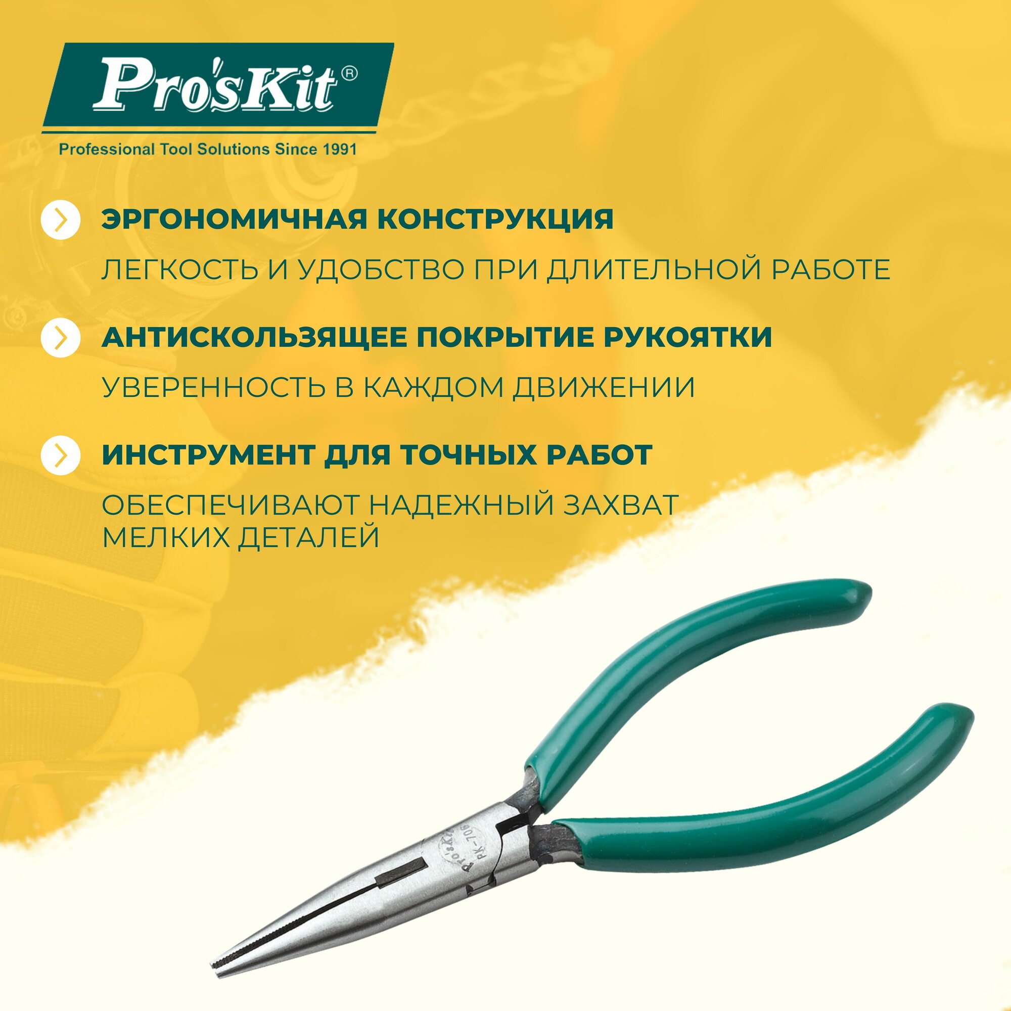 Купить Длинногубцы прецизионные 1PK-706 PROSKIT с проводящей рукояткой, 135 мм, резка жесткой стальной проволоки диаметром до 0.8 мм