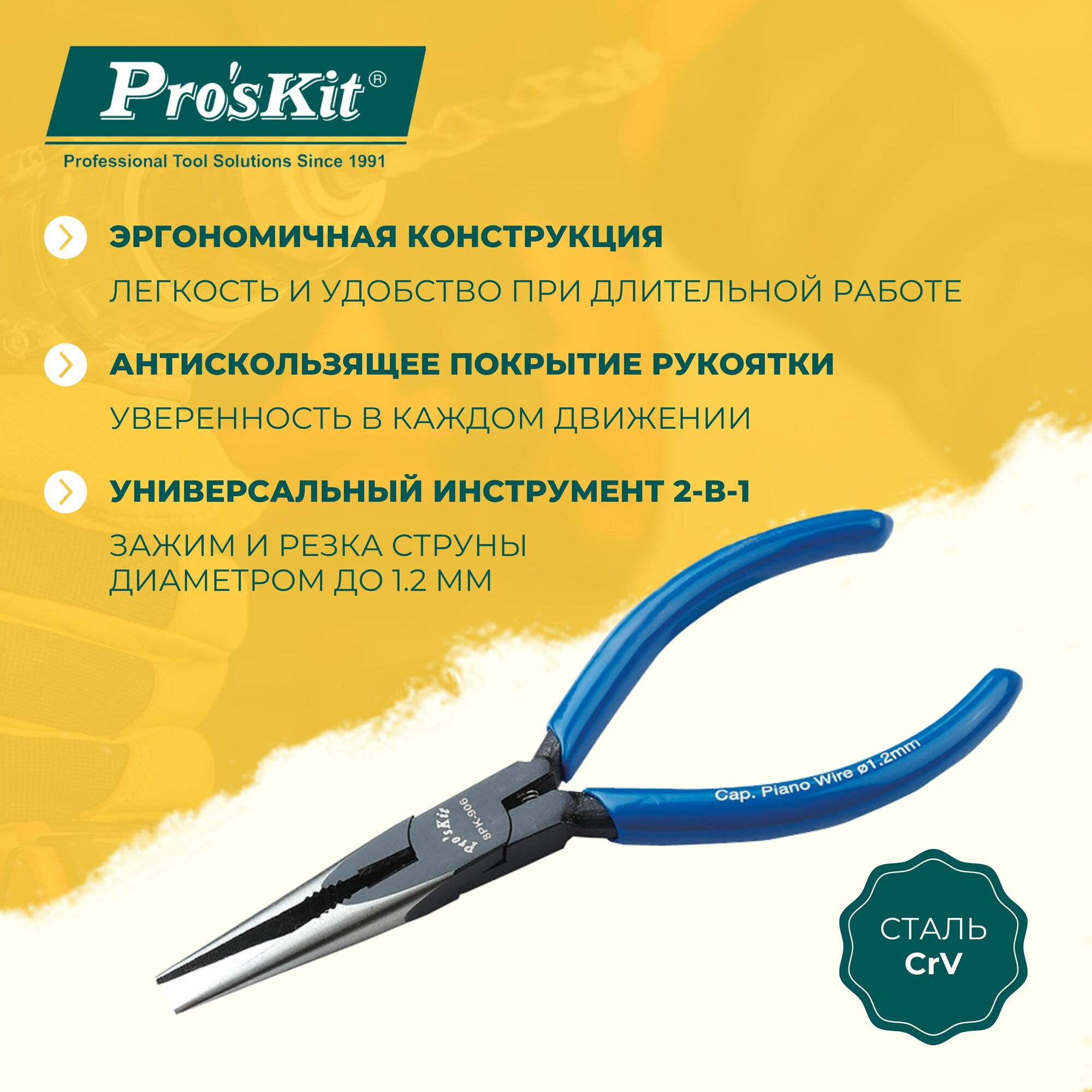 Купить Длинногубцы-кусачки прецизионные 8PK-906 PROSKIT из CrV стали, с возвратной пружиной, 140 мм, резка жесткой стальной проволоки диаметром до 1.2 мм