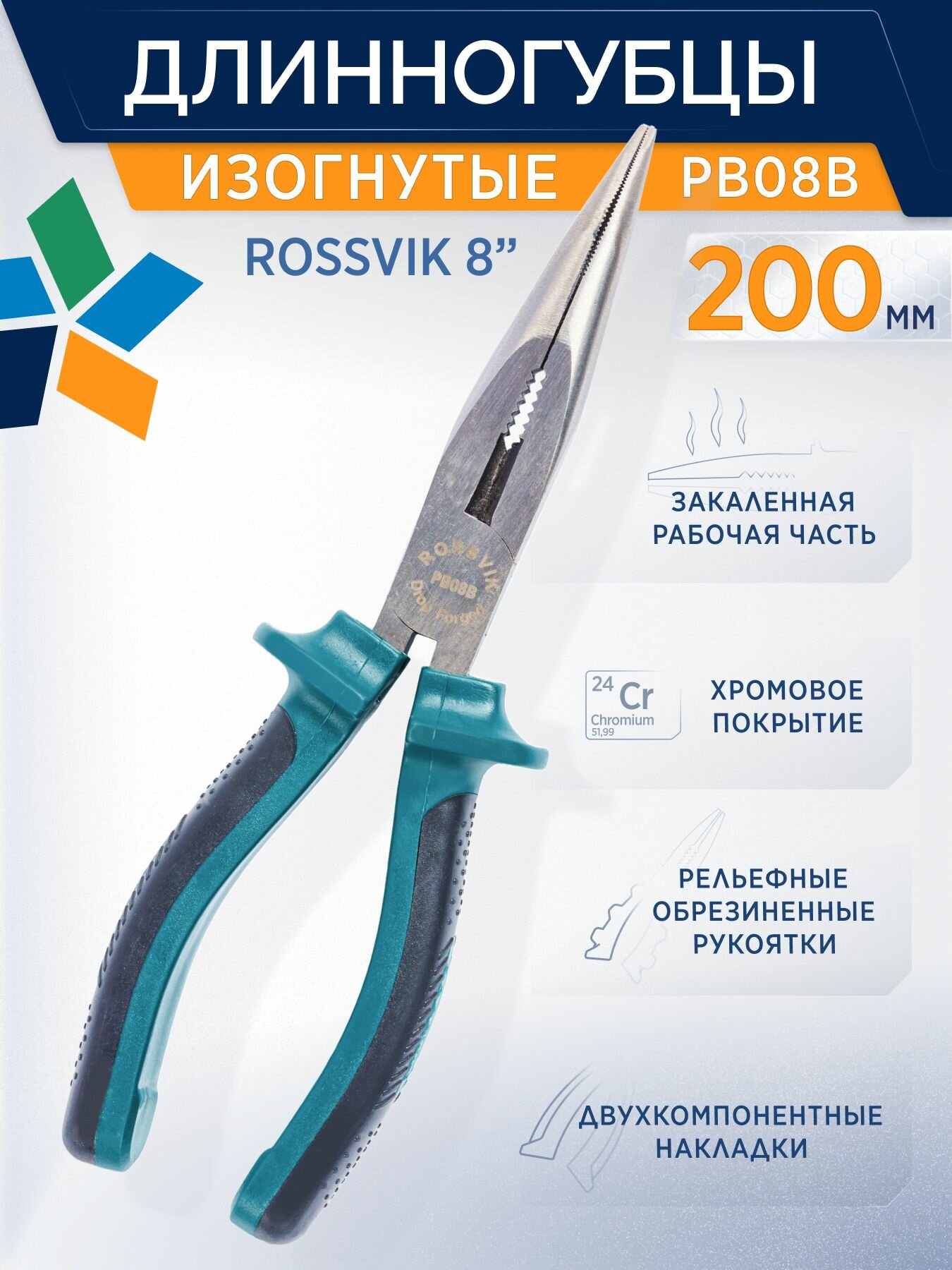 ROSSVIK Длинногубцы изогнутые 200мм, тонкогубцы утконосы загнутые 20 см интересное: