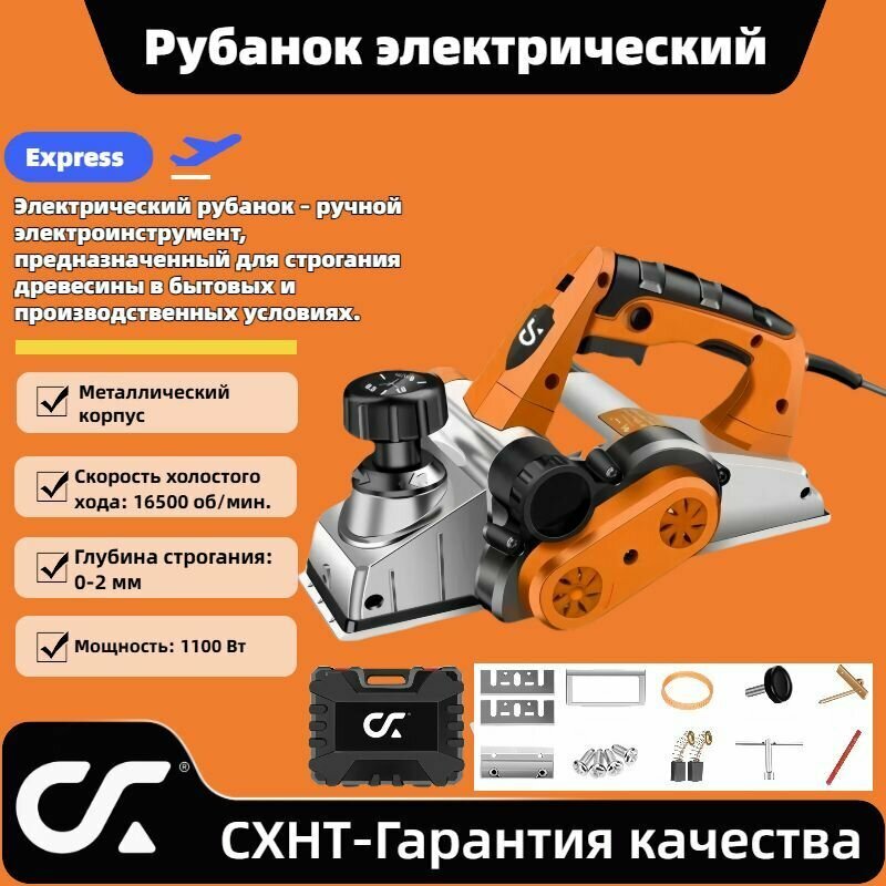 Рубанок электрический Мощность: 1100 Вт, полный набор аксессуаров, глубина 0-2 мм. интересное: