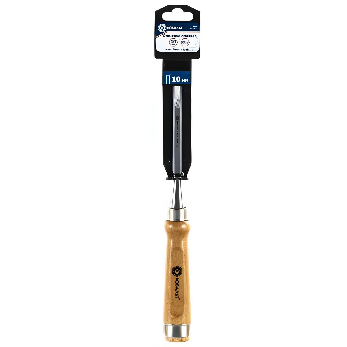 Купить Стамеска плоская кобальт 10 х 140 мм, CR-V, деревянная рукоятка (1 шт.) подвес (245-725)
