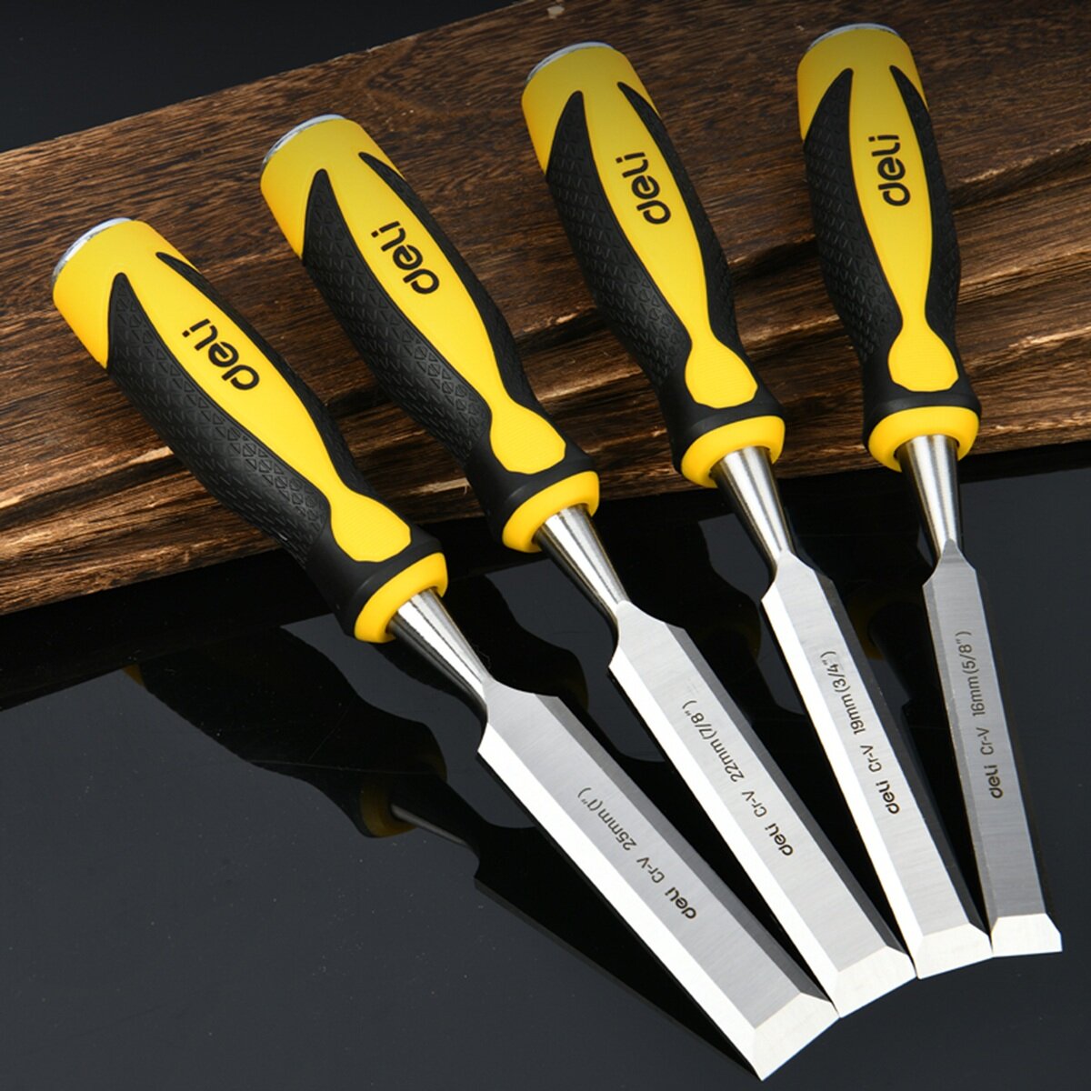 Купить Стамеска плоская 16мм Deli DL6216-E1 (CrV сталь, рабочая длина 140мм, угол заточки 25 град, прорезиненная рукоять)