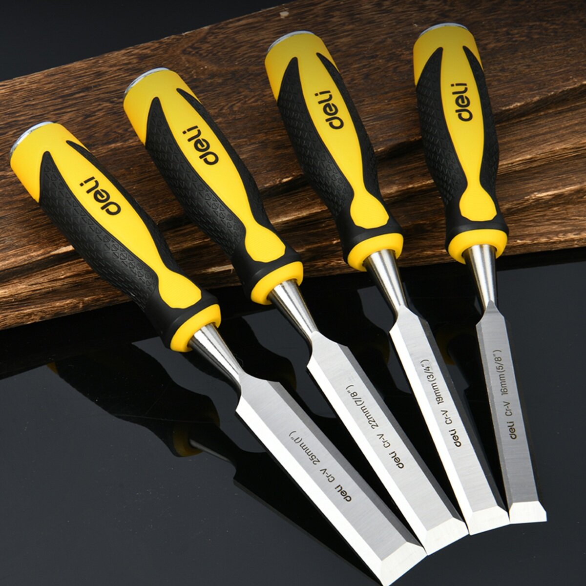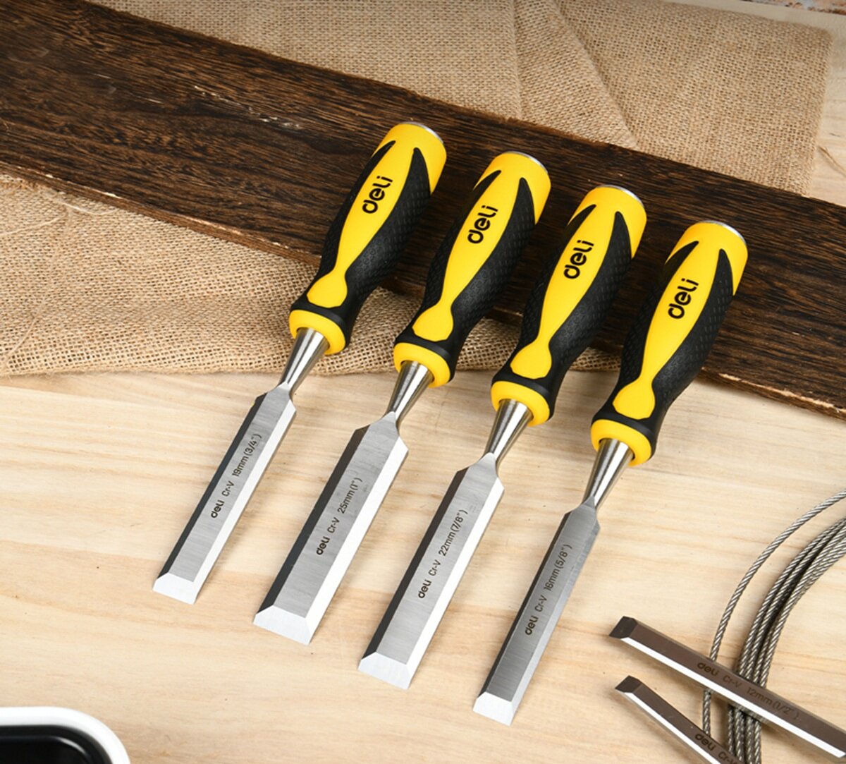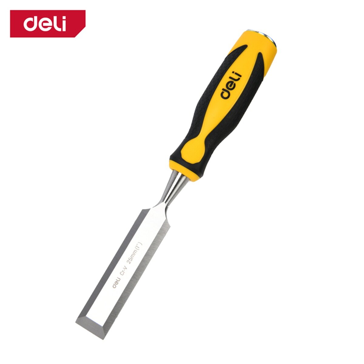 Купить Стамеска плоская 25мм Deli DL6225-E1 (CrV сталь, рабочая длина 140мм, угол заточки 25 град, прорезиненная рукоять)